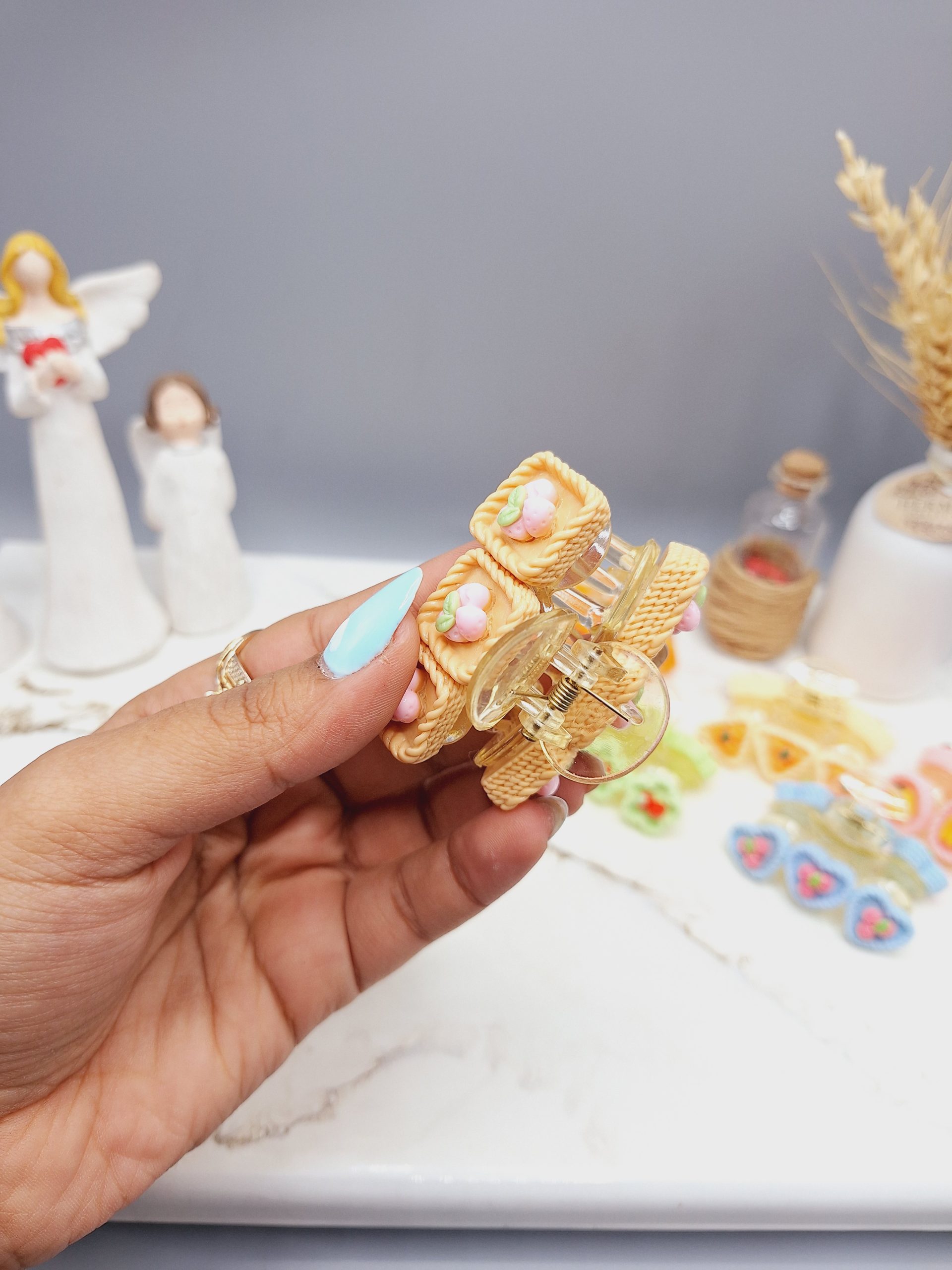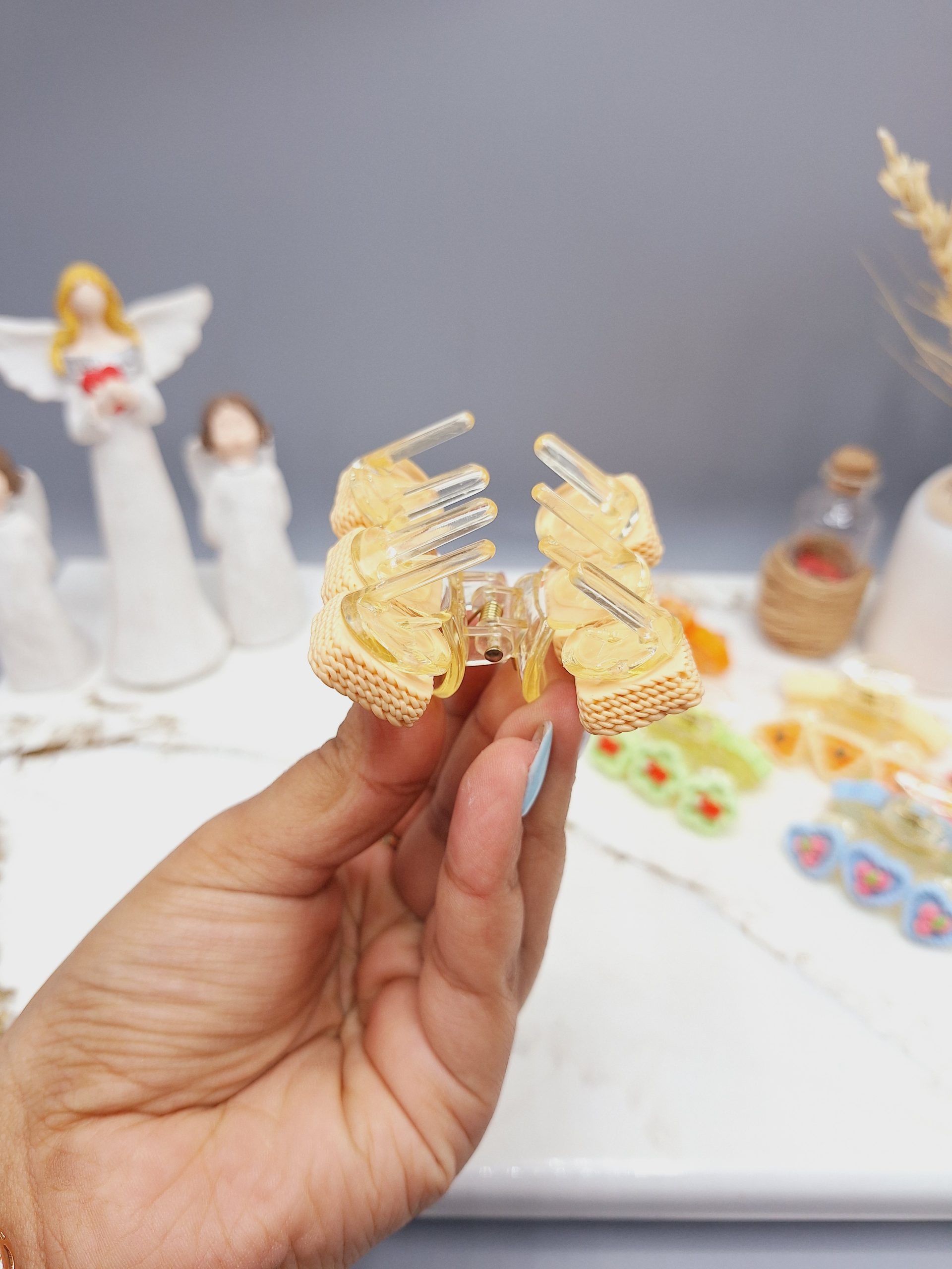 کلیپس مدل میوه هولوگرامی یکی از پرکاربردترین انواع اکسسوری موی زنانه؛ کلیپس (jaw clips) است. کلیپس مو، وسیله ای است که با دندانه های درشت خود و فشار دادن، باز و بسته میشود. آنها معمولا از جنس آکرولیک، فلز و یا پلاستیکی هستند و موهای شما را در بالای سر نگه میدارند. به صورت کلی از این اکسسوری برای جمع کردن و حالت دادن موی سر استفاده میشود.