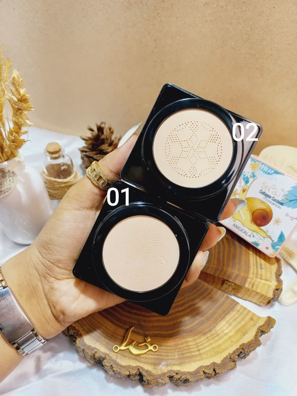 کوشن حلزون کلاژن ANGEALAبدون اسیب رساندن به پوست محصولی عالی برای بانوان است.