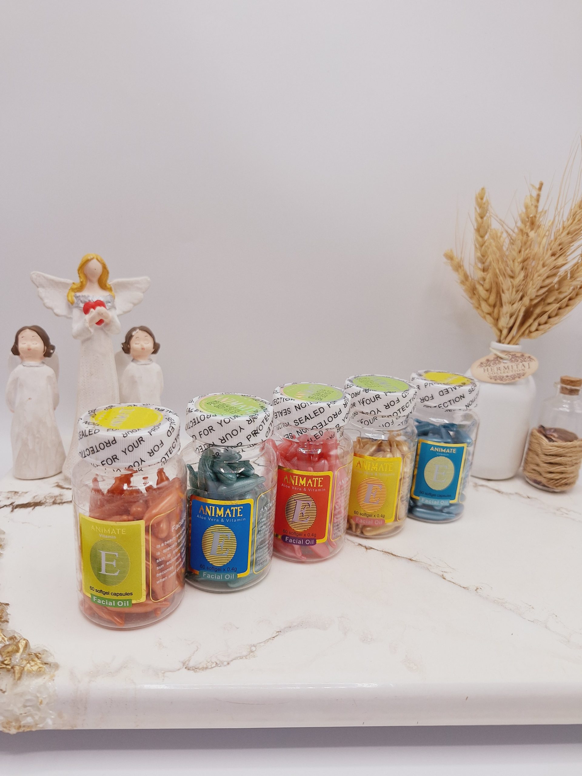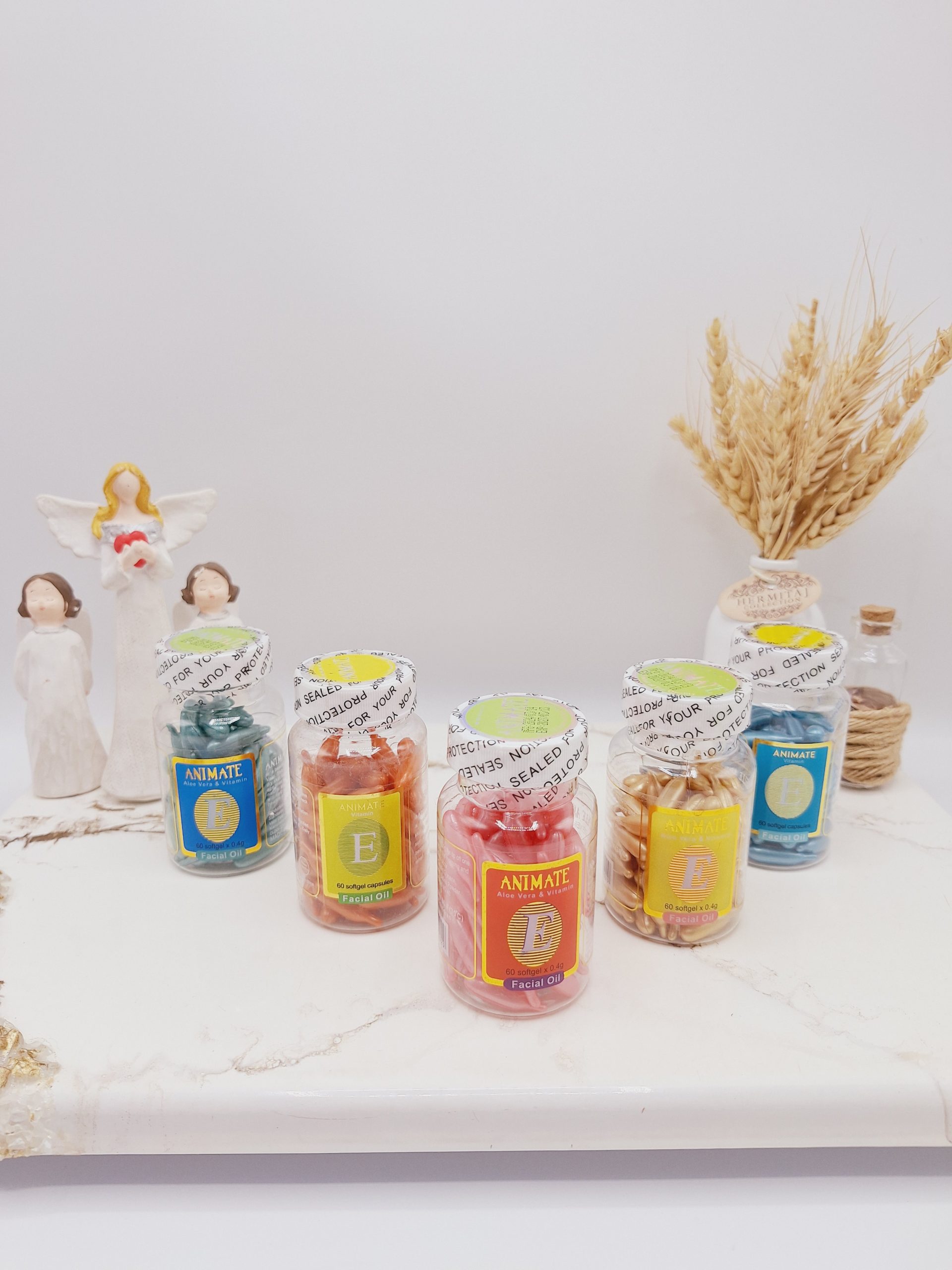 کپسول ضد چروک ویتامین E انیمیت شصت عددی هر بسته حاوی 60 عدد کپسول مناسب رفع چین و چروک صورت و رفع سیاهی دور چشم و رفع خشکی و آبرسان پوست و دارای ویتامین E و آلوئه ورا می باشد.