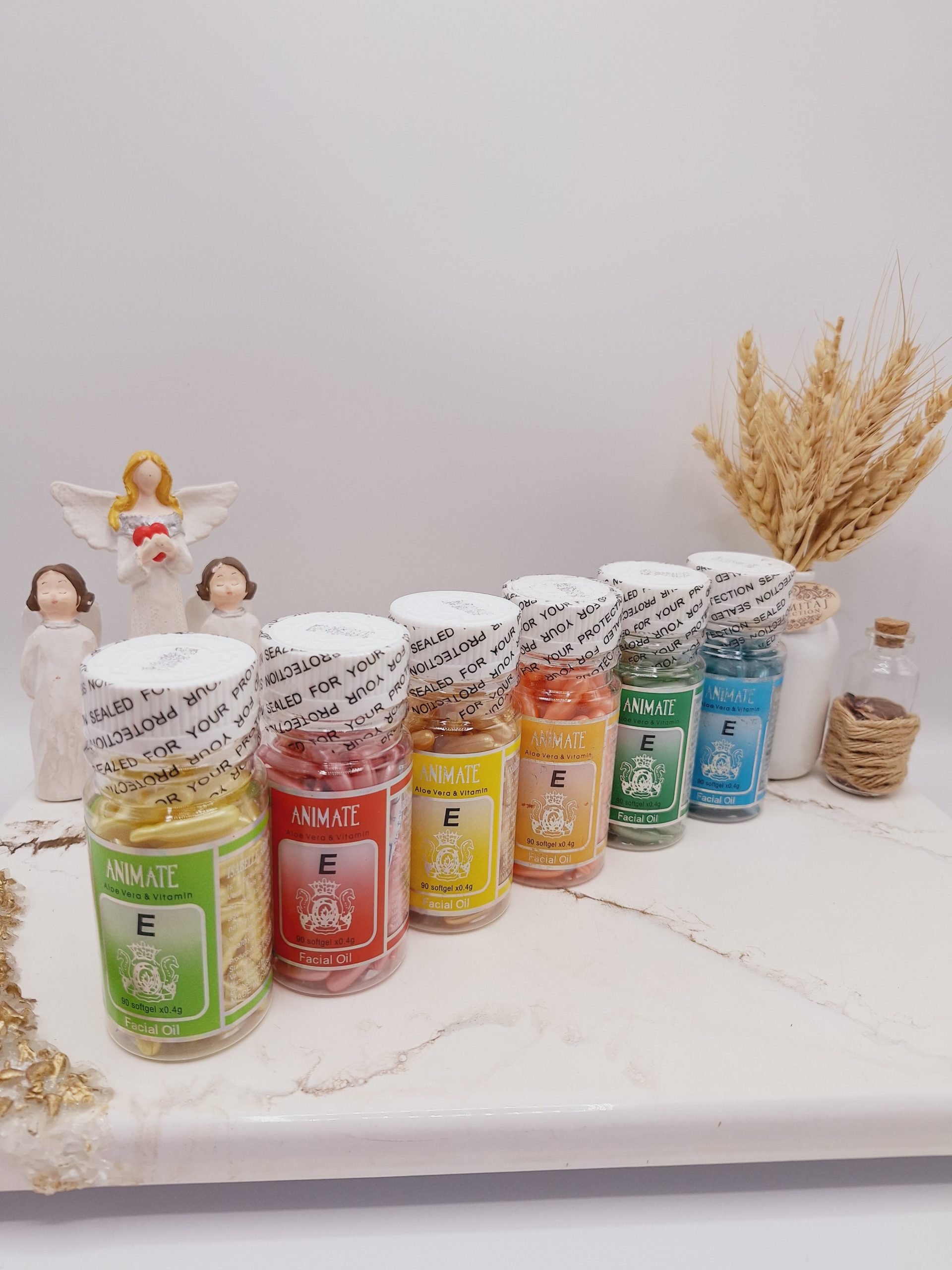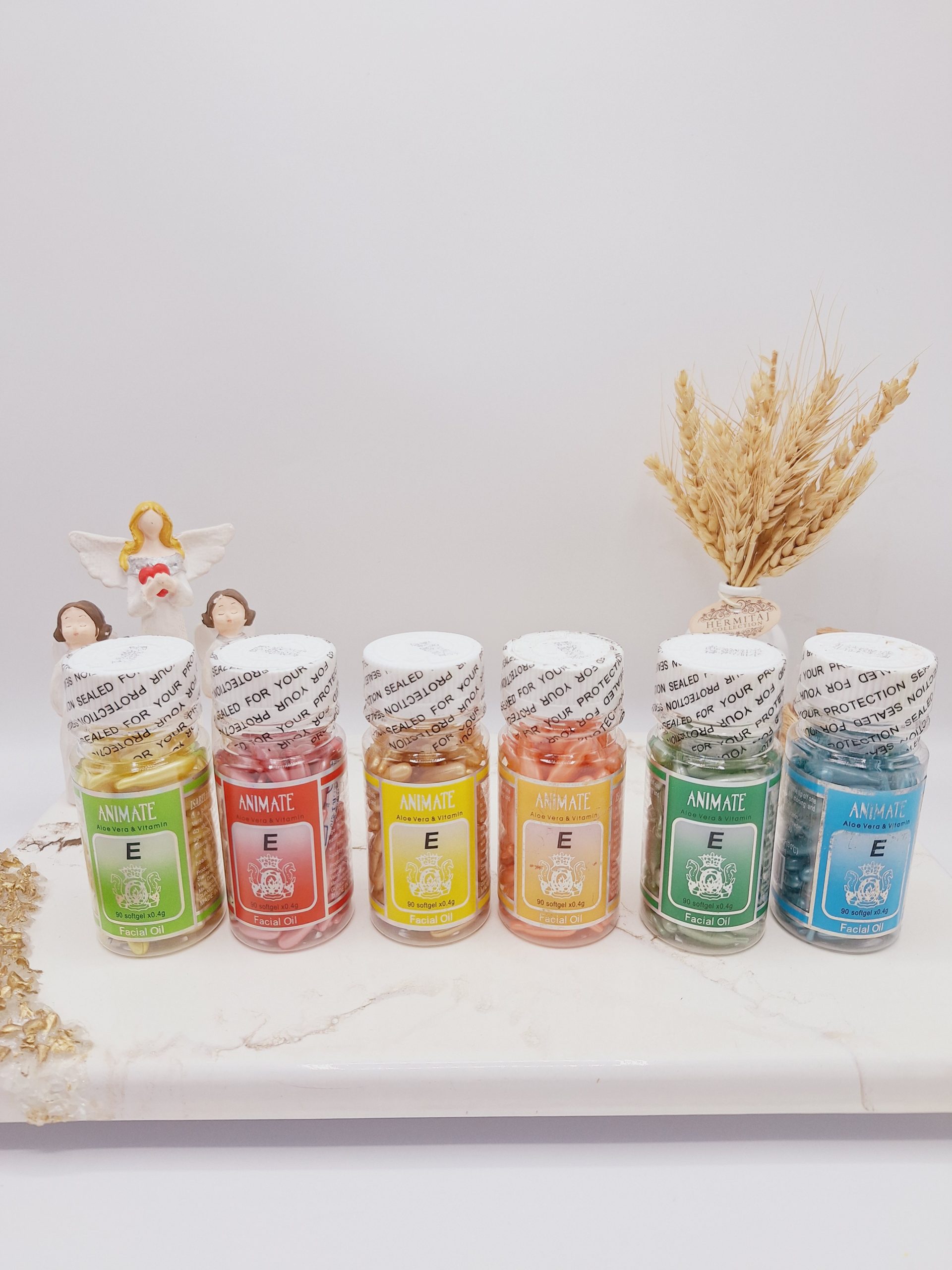 کپسول ضد چروک ویتامین E انیمیت شصت عددی هر بسته حاوی 90 عدد کپسول مناسب رفع چین و چروک صورت و رفع سیاهی دور چشم و رفع خشکی و آبرسان پوست و دارای ویتامین E و آلوئه ورا می باشد.