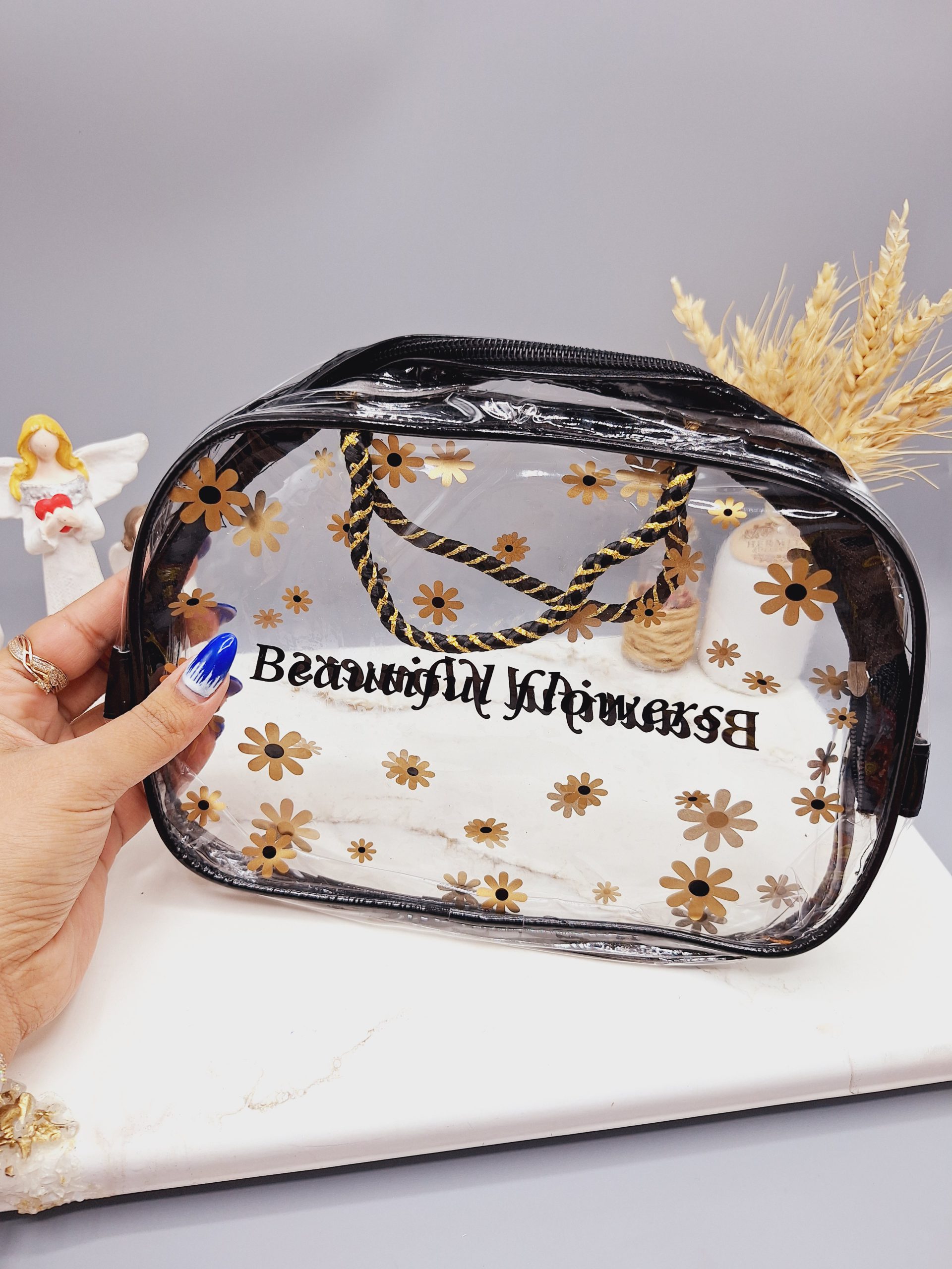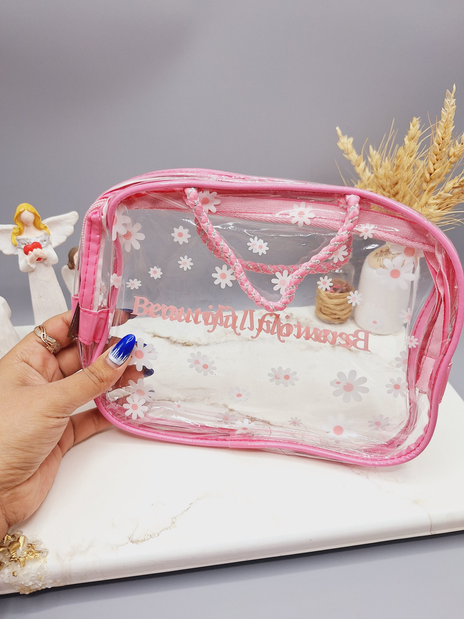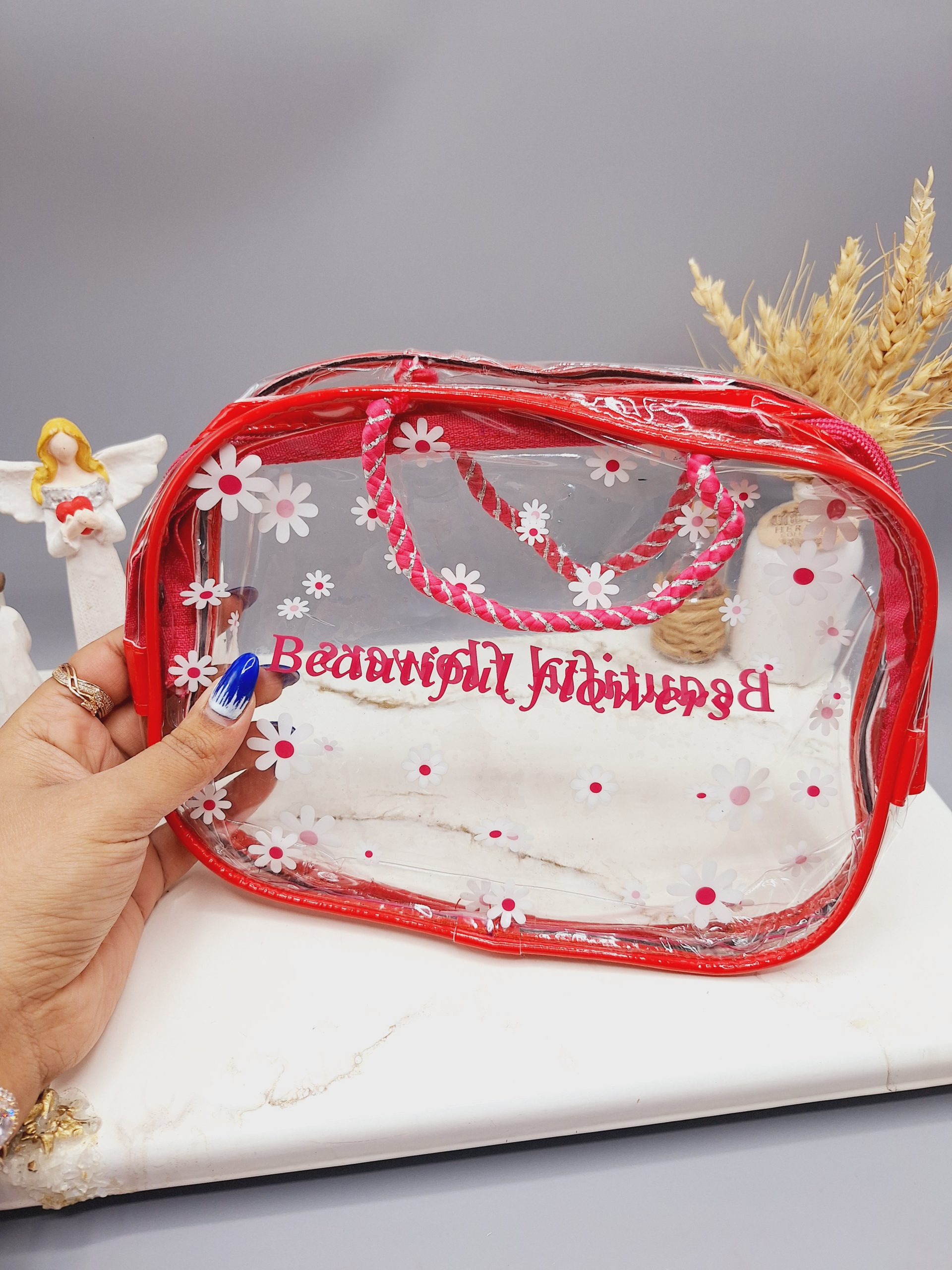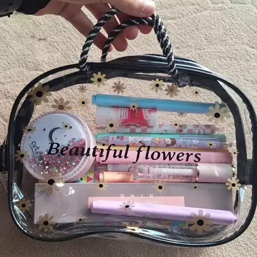 #کیف_آرایشی طلقی زیپ دار دو دسته