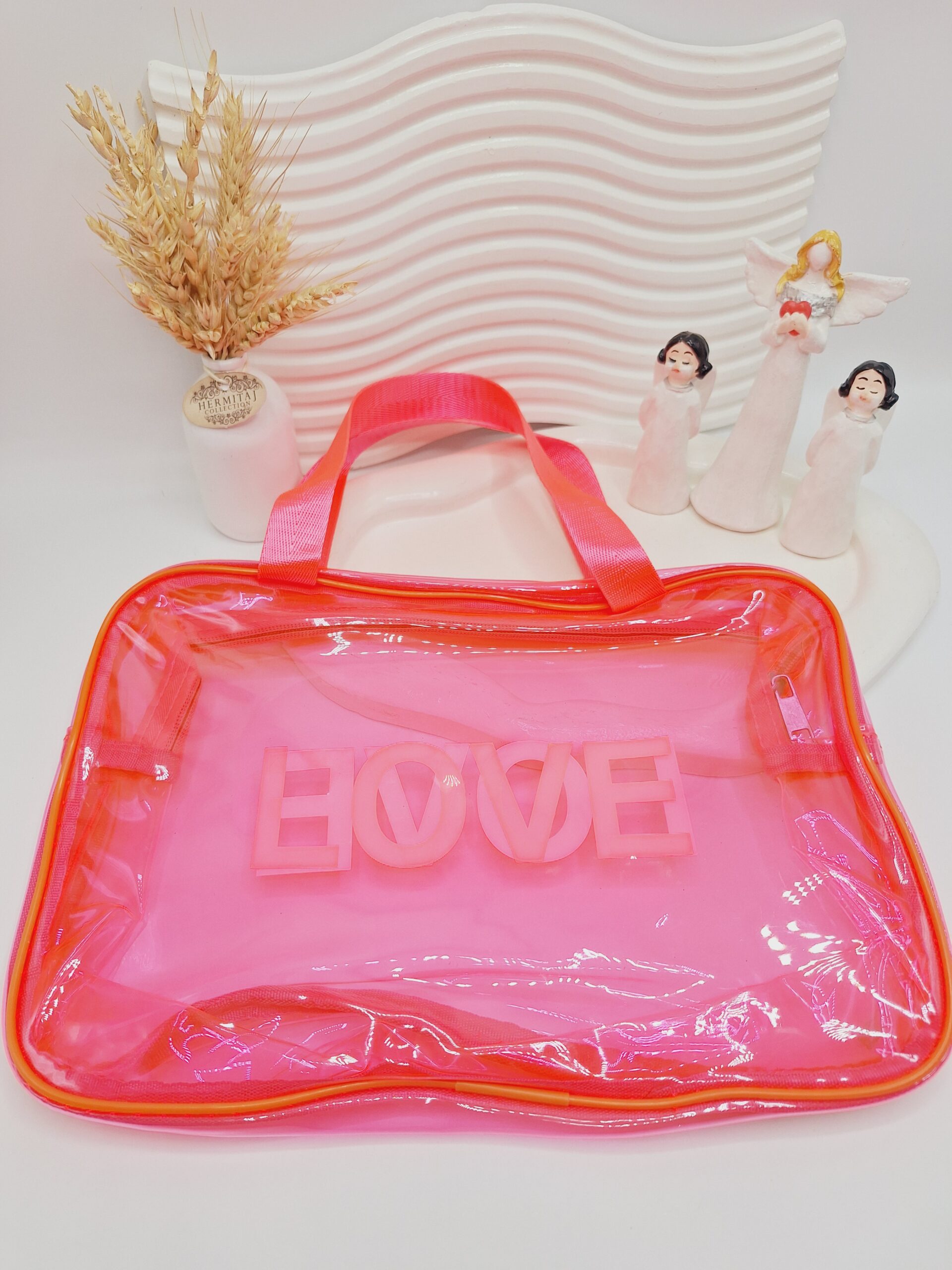کیف لوازم آرایشی سایز بزرگ مدل LOVE (رنگ سرخابی)