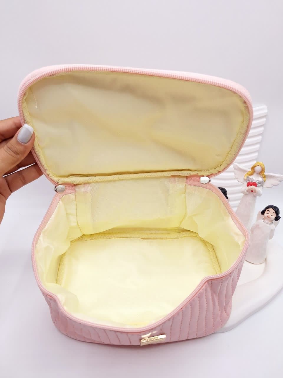 کیف لوازم آرایشی چرمی دوخت شده (رنگ صورتی) FASHION