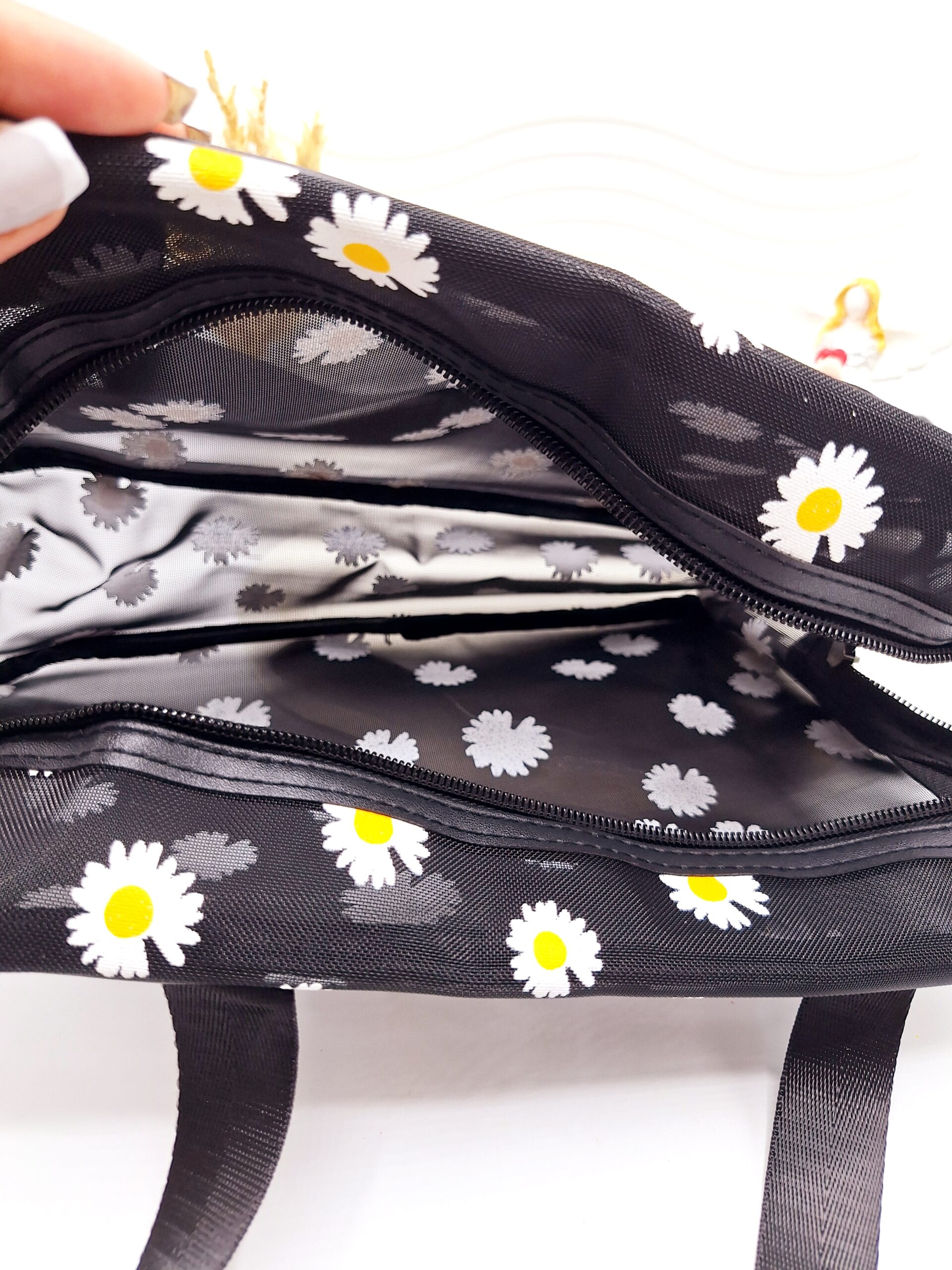 کیف مشکی سایز بزرگ بابونه ✨ یکی از اون اکسسوریهای خاصیه که استایل سادهتو تبدیل به یه تیپ جذاب و چشمگیر میکنه. طرح بابونه الهامگرفته از زیبایی و لطافت طبیعته 🌼💖 و حس دخترونه و دلنشینی رو به همراه داره.