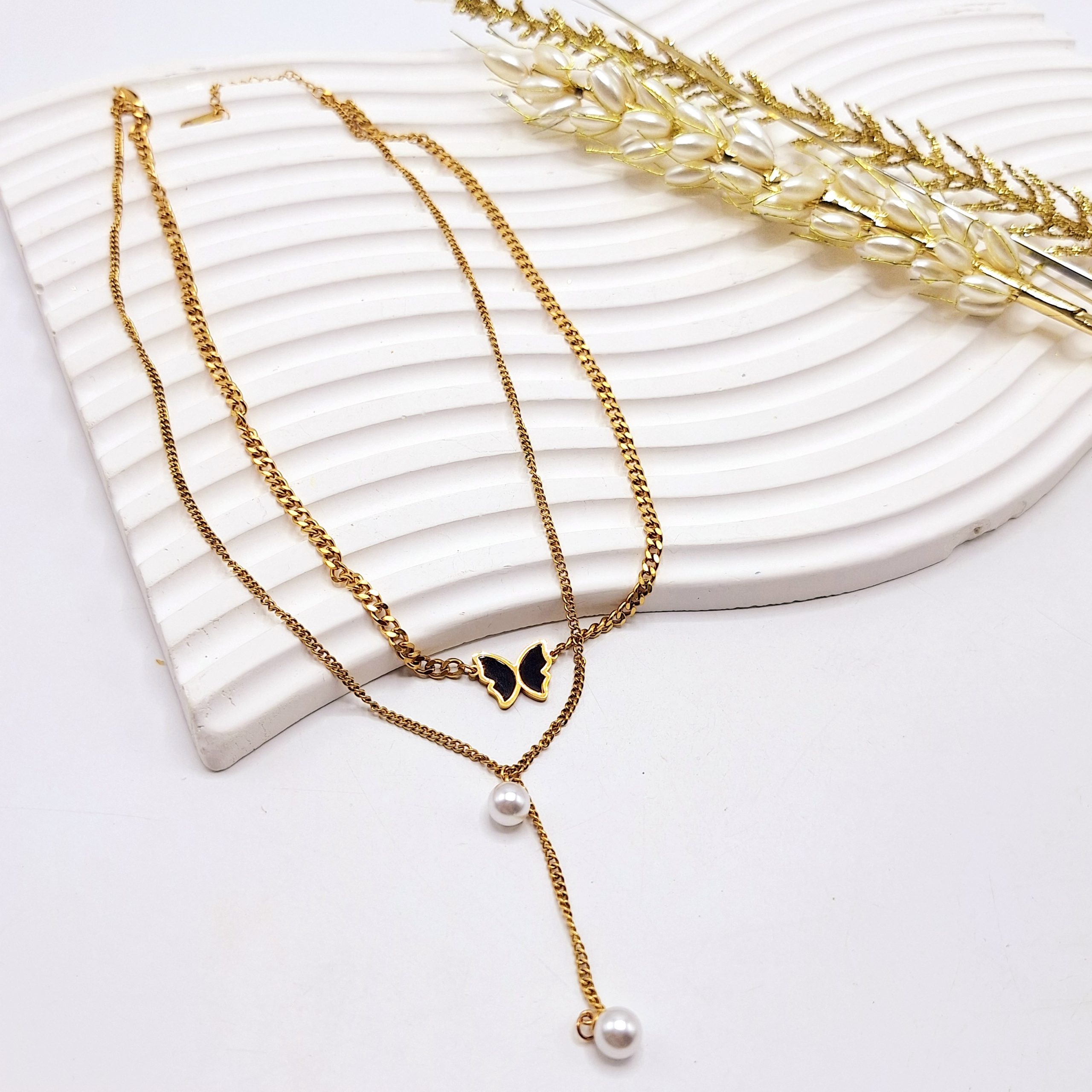 🆔 مدل: گردنبند دو لاین پروانه مشکی با مروارید