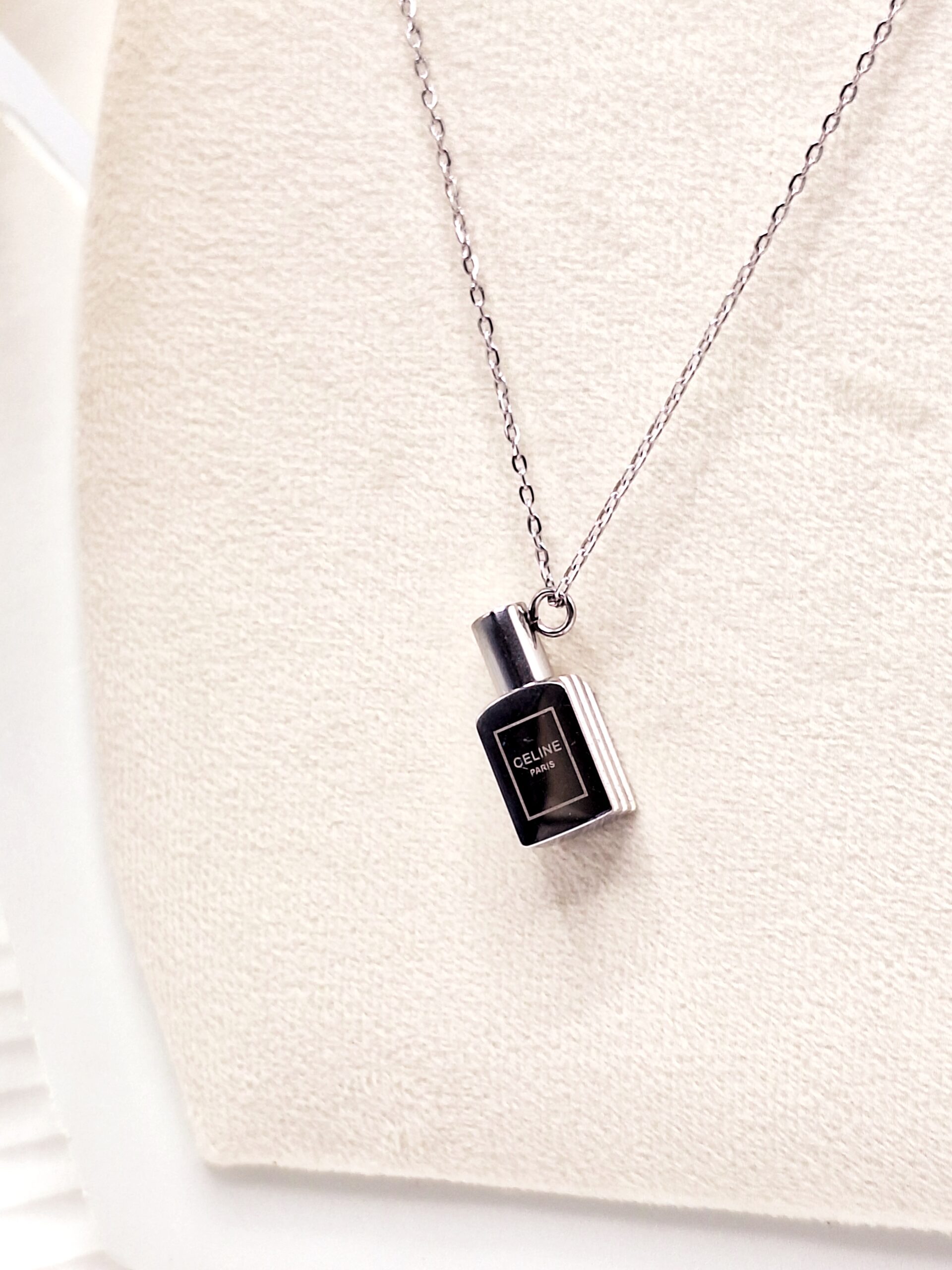 🌸 این گردنبند الهام گرفته از رایحههای خوشبو و حس خاص عطرهاست 💖✨ مخصوص دخترایی که عاشق استایلهای شیک، متفاوت و دخترونه هستن 😍💫. طراحی شیشهای و مینیمال باعث میشه هر نگاه بهت جلب بشه و استایل تو پر از حس لطافت و جذابیت بشه 🌟💎.