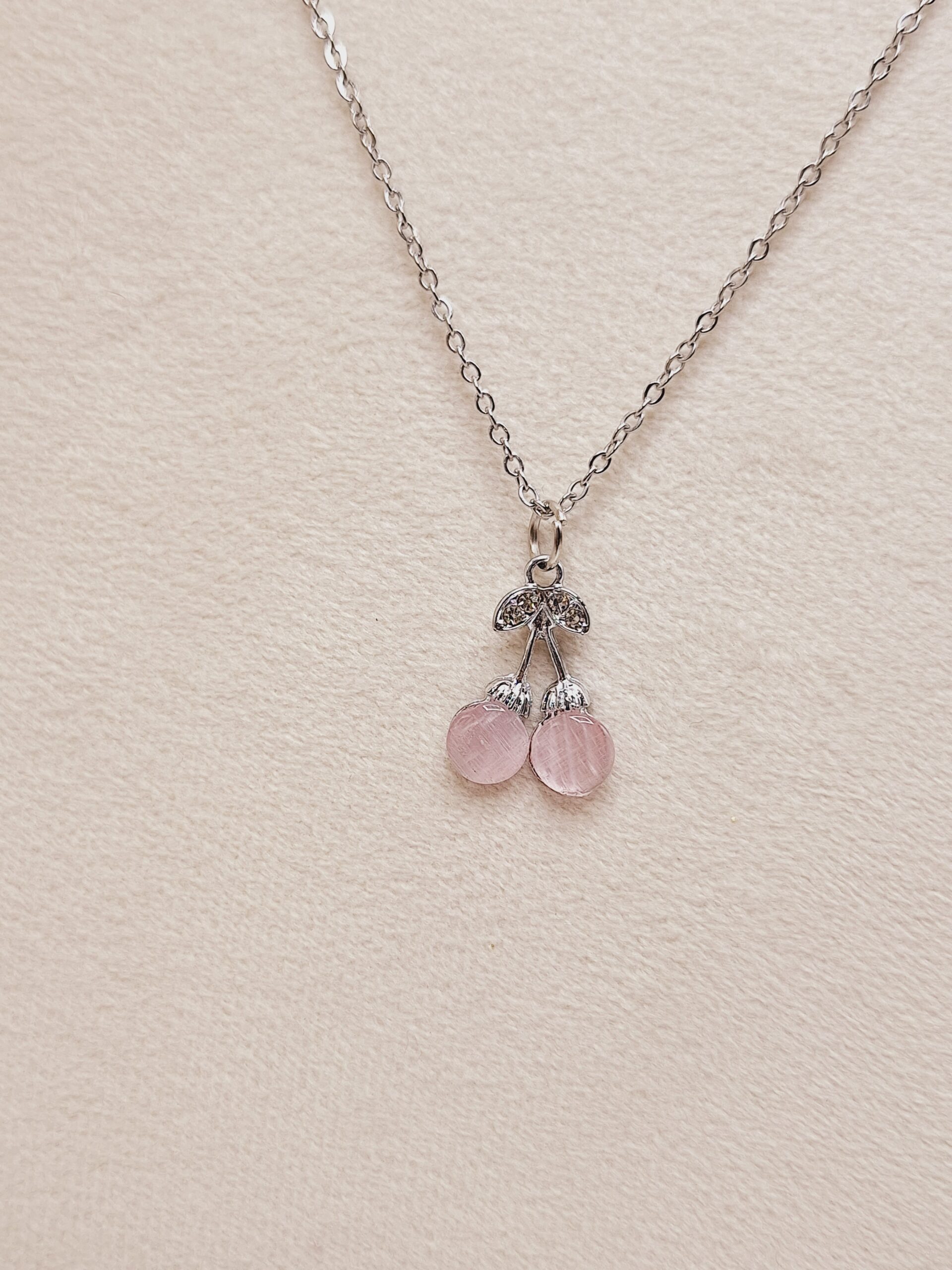 گردنبند جواهری طرح گیلاسی رنگ صورتی