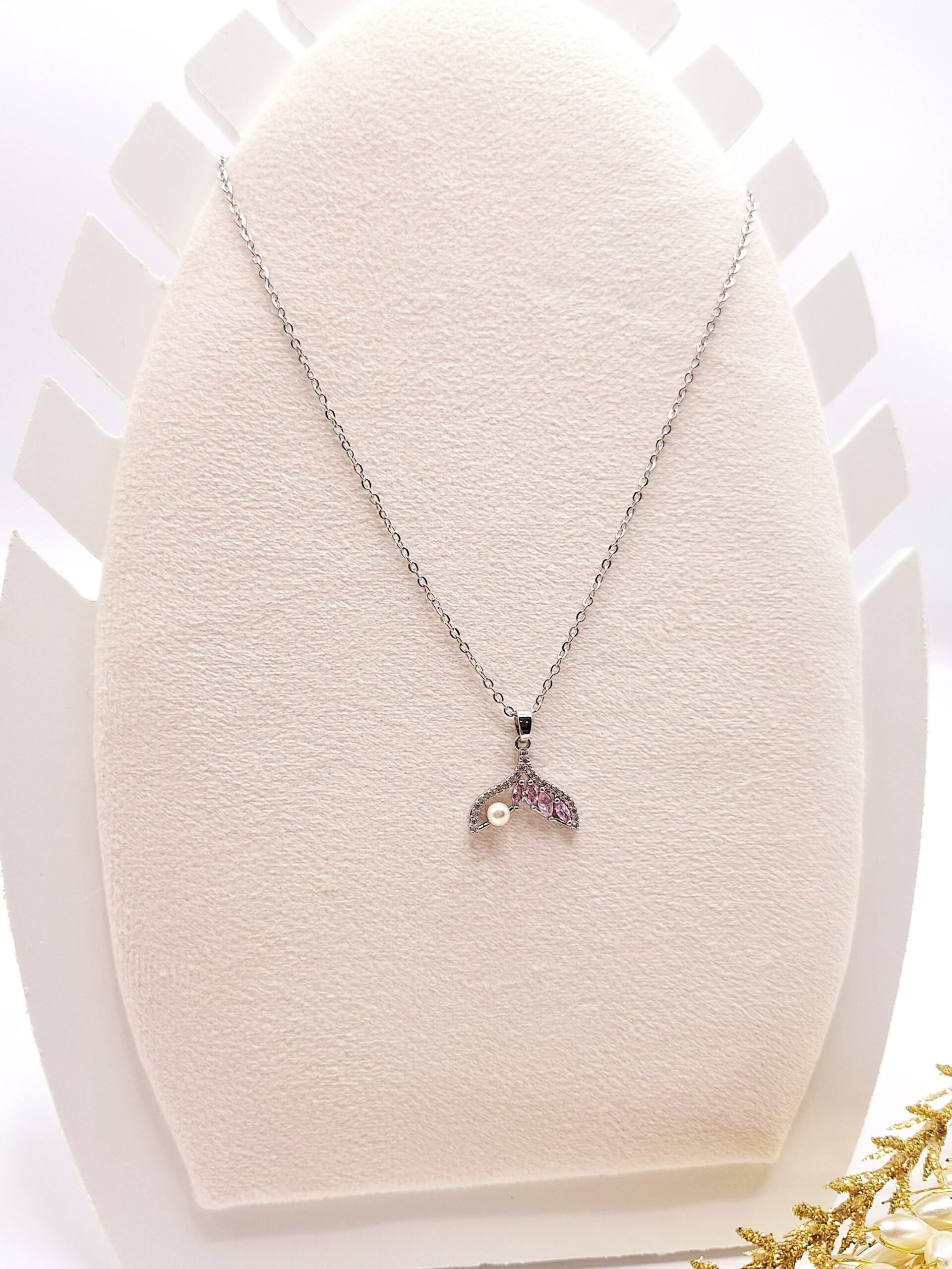 گردنبند دم وال نگین دار صورتی