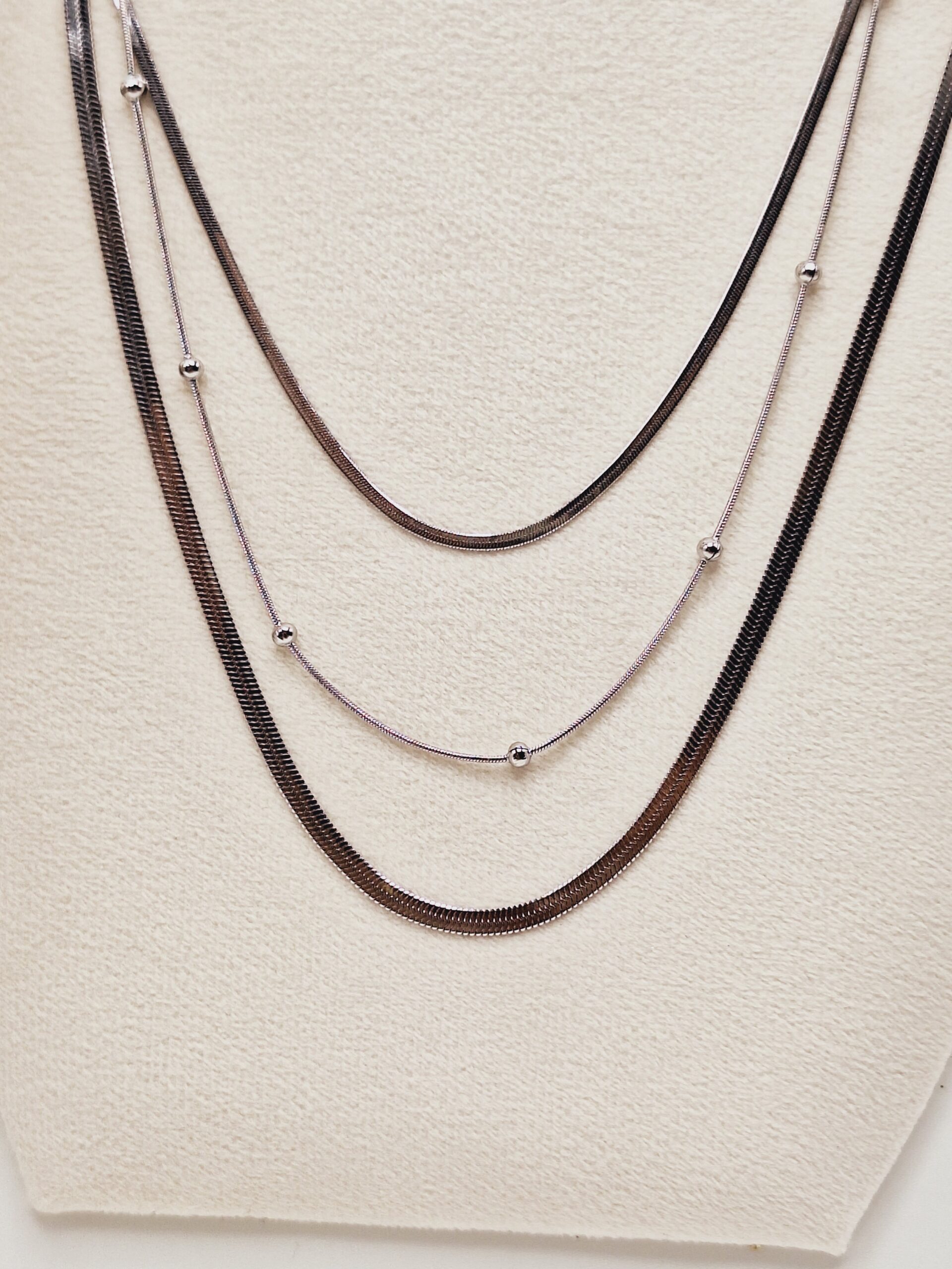 گردنبند دو لاین ماری و توپی نقره ای