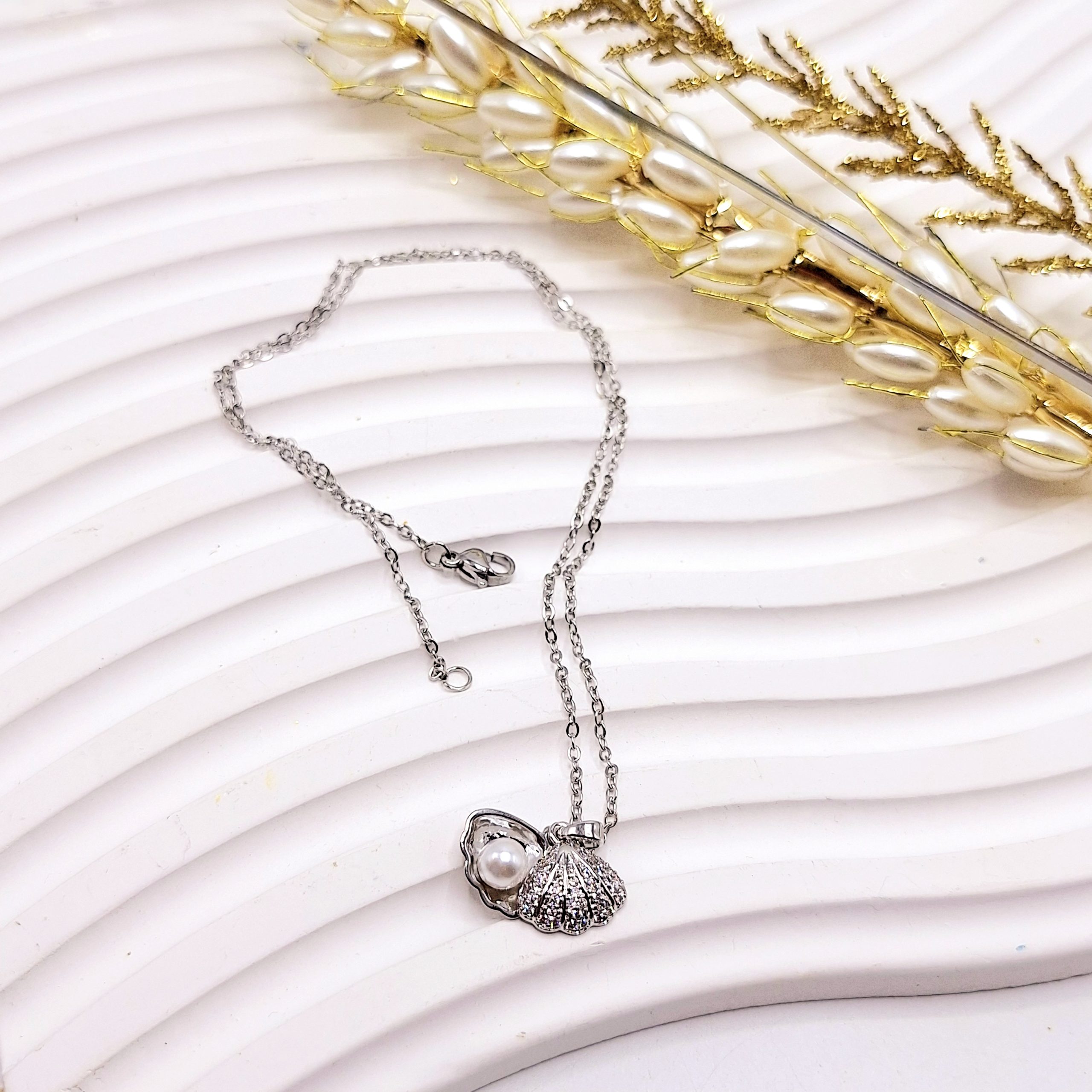 🆔 مدل: گردنبند صدف مرواریدی فول نگین