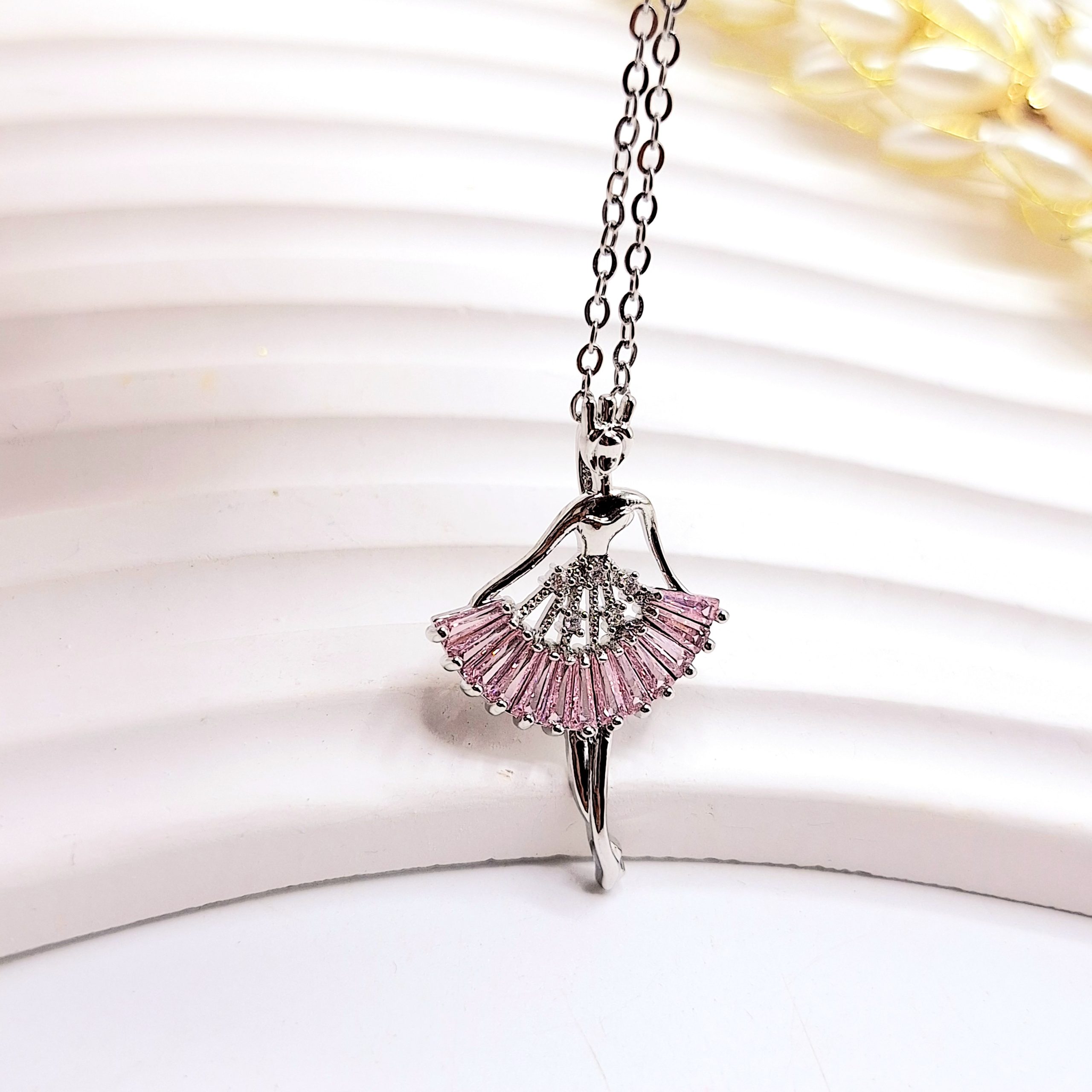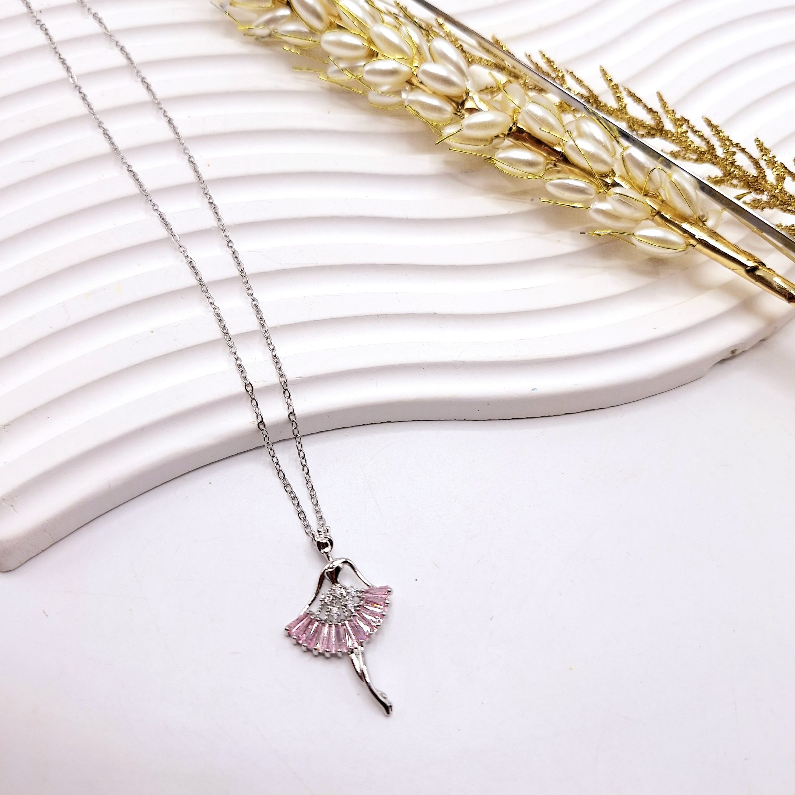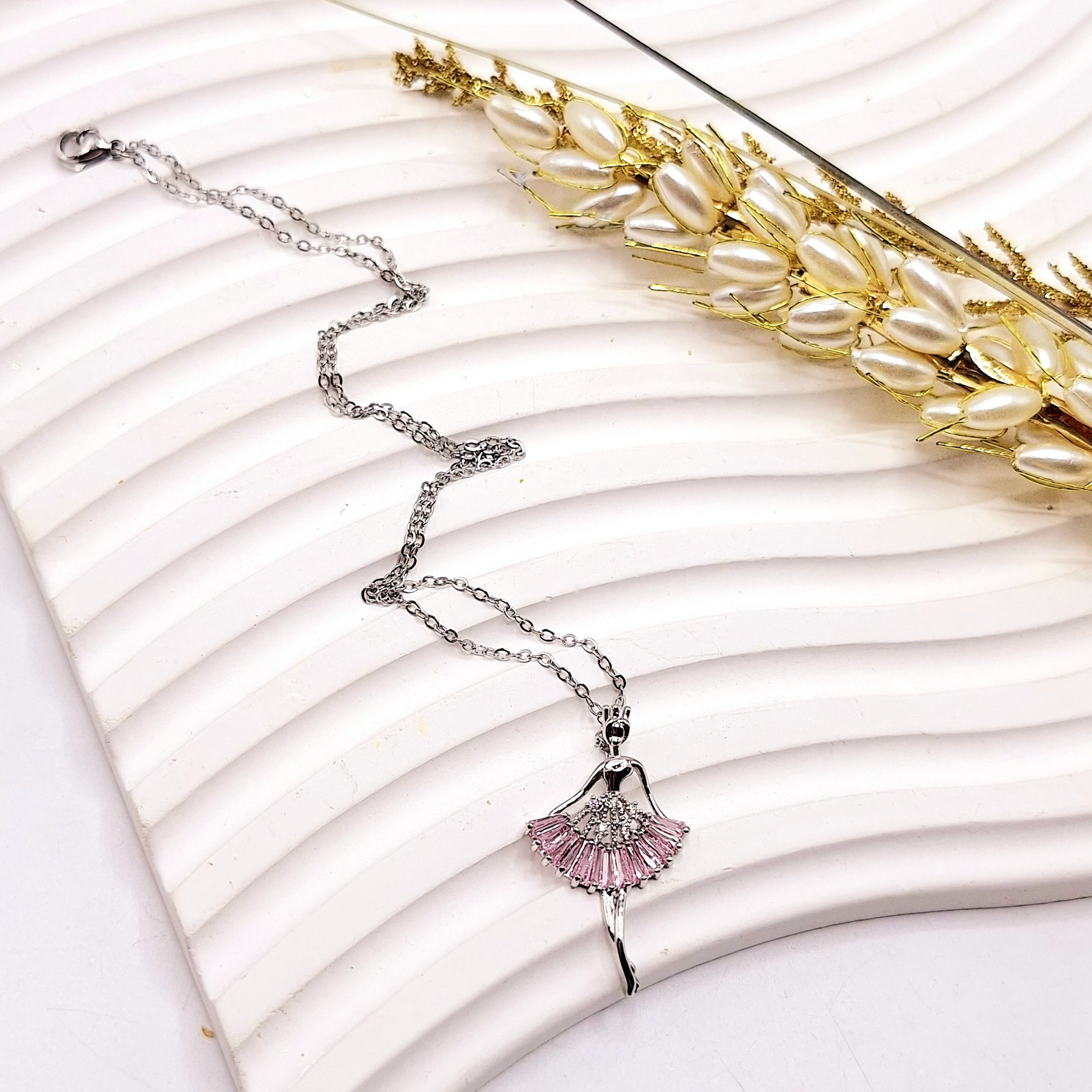 گردنبند زنانه طرح پرنسس بالرین فول نگین استیل