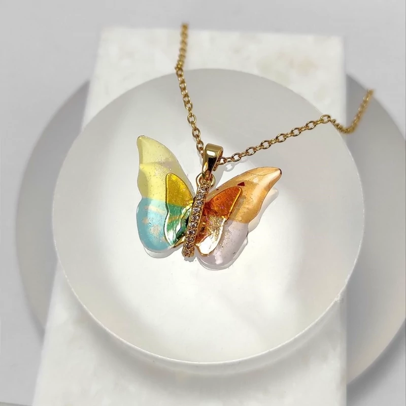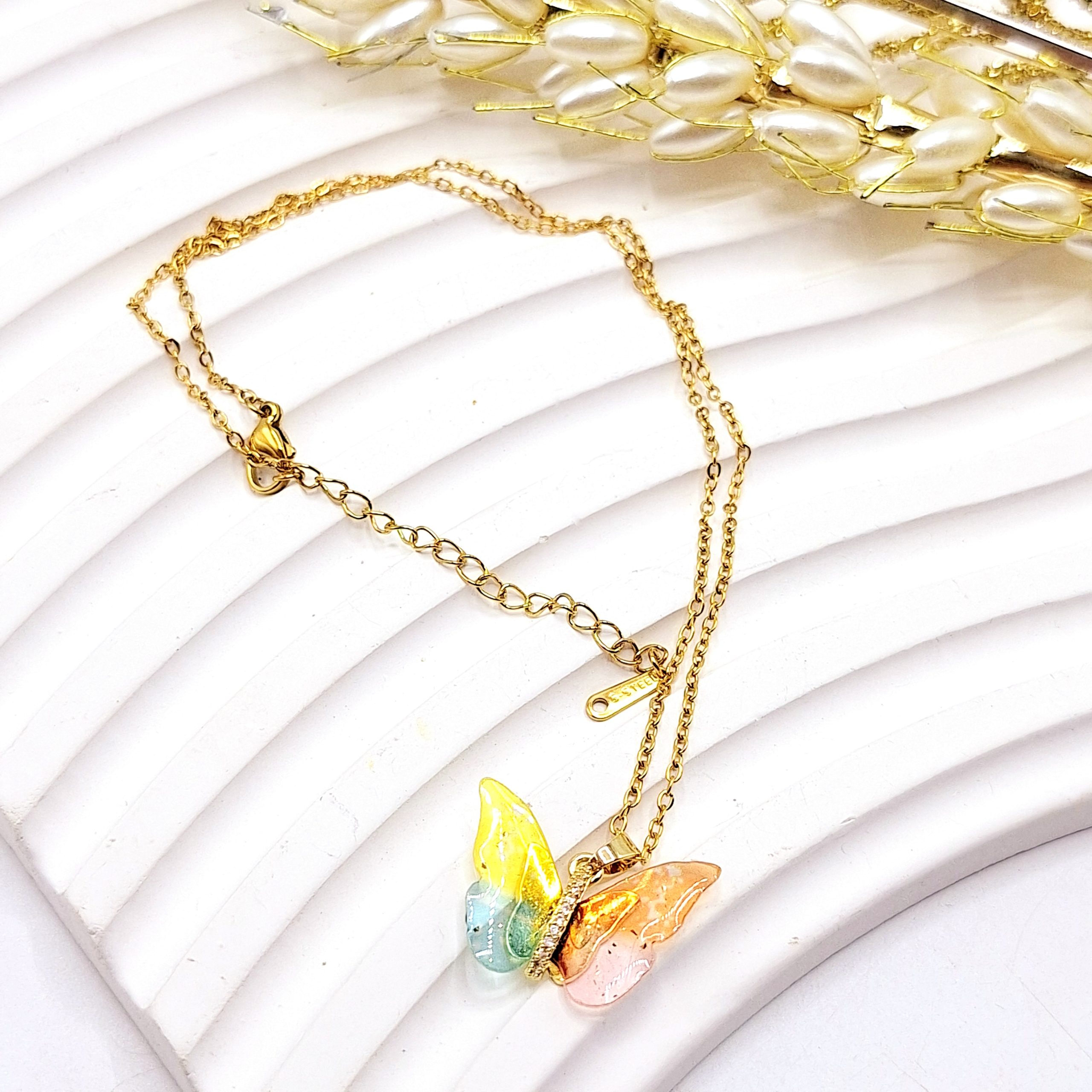 گردنبند زنانه طرح پروانه شیشه ای کهکشانی