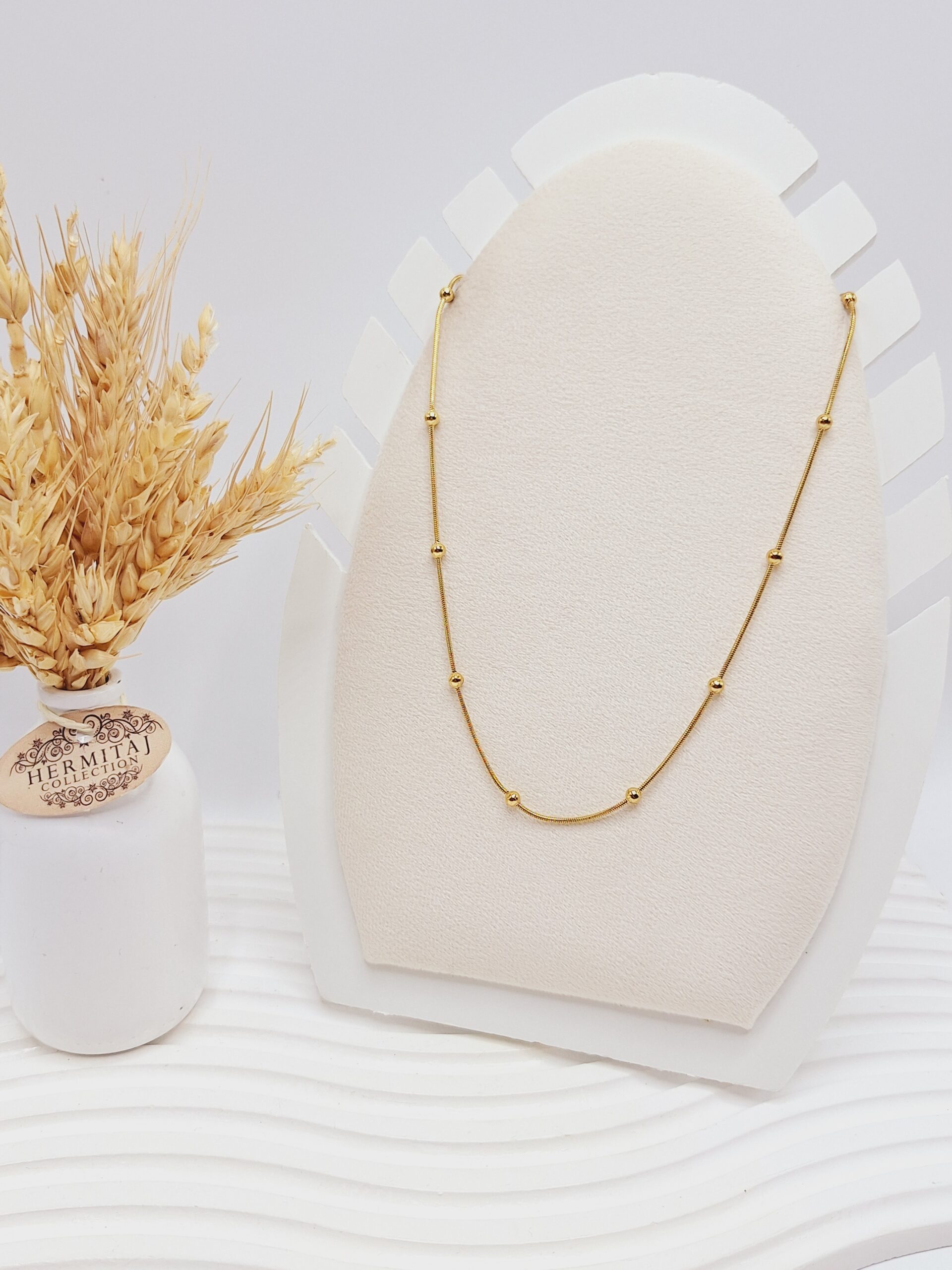 💖 گردنبند زنجیر توپی طلایی – الهام گرفته از ✨ درخشش و جذابیت گوی‌های کوچک 🌸 طراحی شیک و دخترونه برای خانم‌هایی که عاشق استایل جذاب و مینیمال هستند 💎 فلز طلایی ضد حساسیت با جلوه لوکس و بادوام 💫 سبک و راحت، مناسب استفاده روزمره و هدیه دادن 🛍 مناسب همه کسانی که عاشق جزئیات ظریف و دوست‌داشتنی هستند 🎀 رطوبت حمام و الکل زیبایی اکسسوری رو از بین میبره ❗️