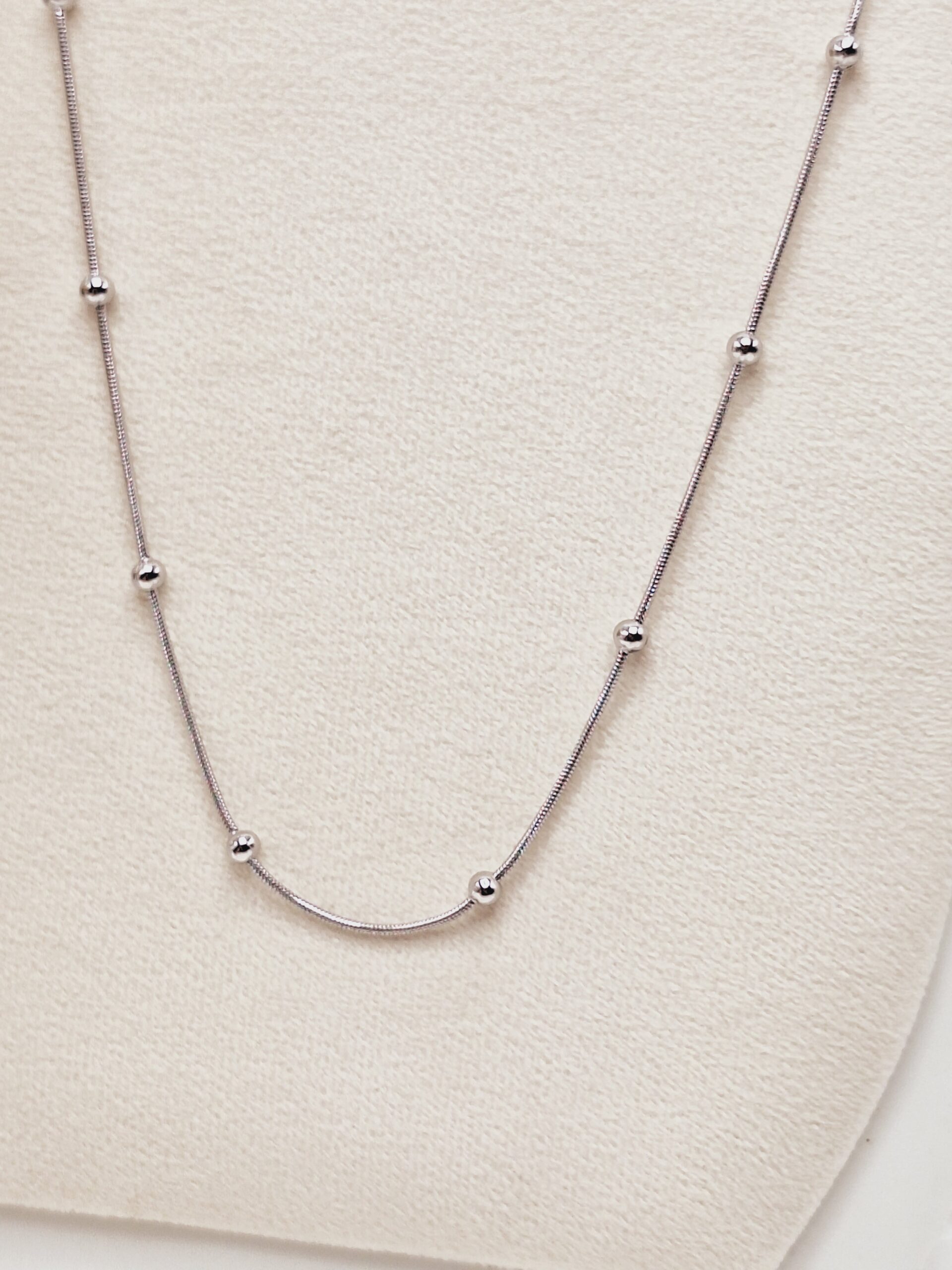 💖 گردنبند زنجیر توپی نقره‌ای – الهام گرفته از ✨ درخشش و جذابیت گوی‌های کوچک 🌸 طراحی مینیمال و دخترونه برای خانم‌هایی که عاشق استایل شیک و جذاب هستند 💎 فلز نقره‌ای ضد حساسیت با جلوه لوکس و بادوام 💫 سبک و راحت، مناسب استفاده روزمره و هدیه دادن 🛍 مناسب همه کسانی که عاشق جزئیات ظریف و دوست‌داشتنی هستند 🎀 رطوبت حمام و الکل زیبایی اکسسوری رو از بین میبره ❗️