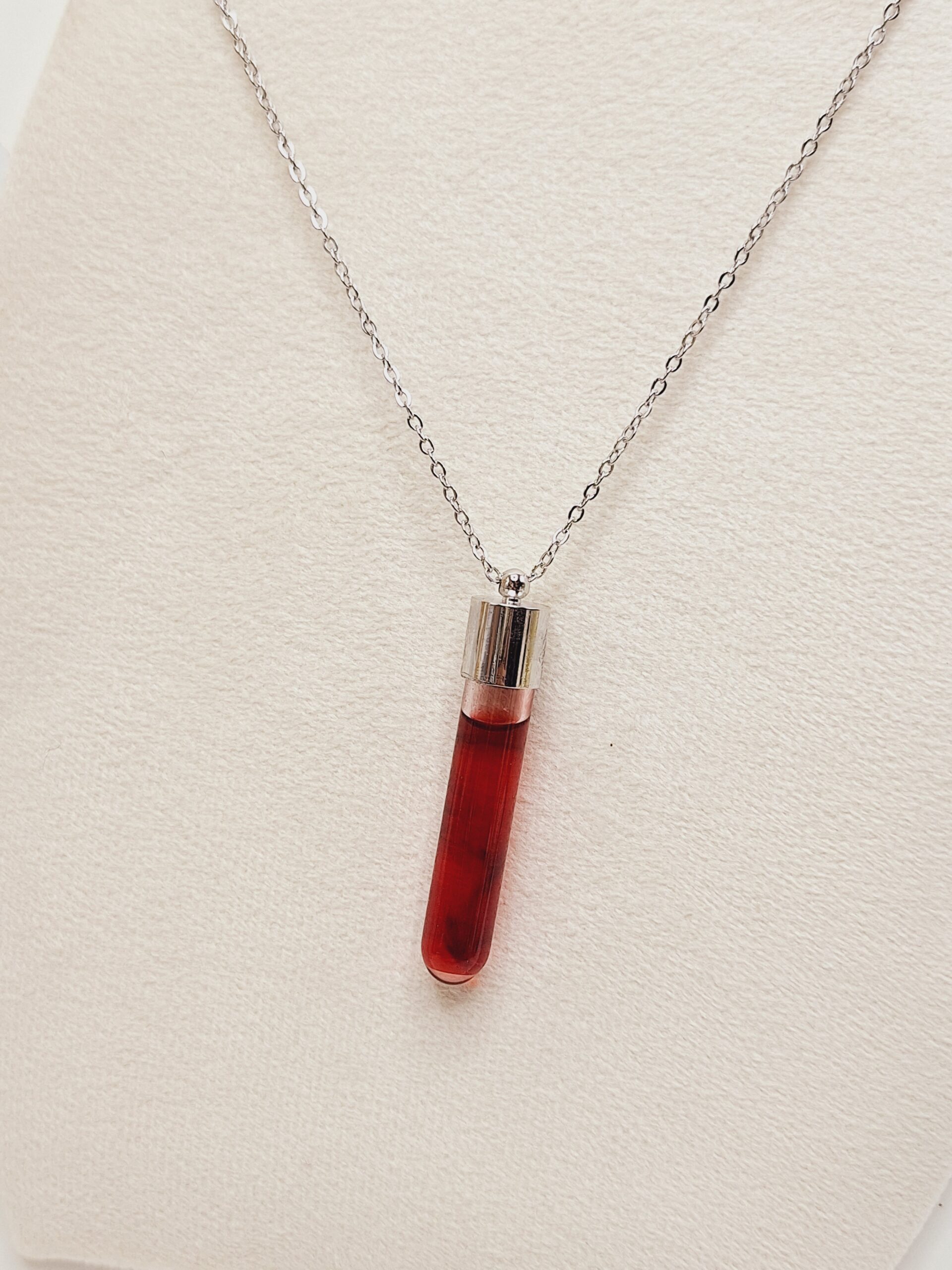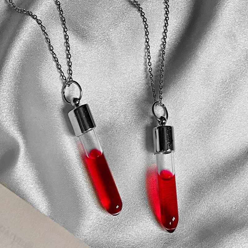 گردنبند شیشه خون استیل، انتخابی جسورانه و فانتزی برای کسانی است که میخواهند استایل خود را با جزئیات منحصر به فرد کامل کنند 🩸✨