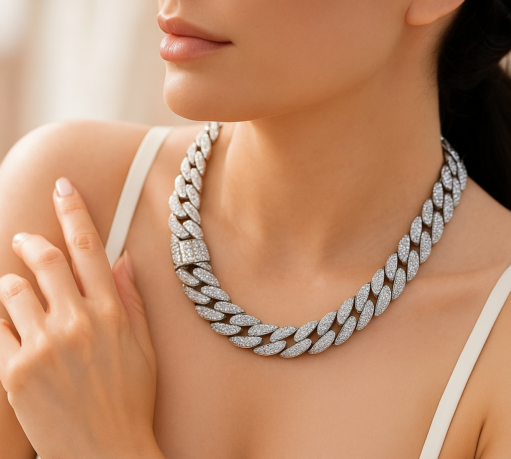 این گردنبند با ترکیب ظرافت و درخشش، هم برای استایلهای روزانه و هم برای مهمونیهای خاص مناسبه. زنجیر کارتیر همیشه نماد قدرت و شیکپوشیه و وقتی با نگینهای براق همراه میشه، یه اکسسوری بیرقیب میسازه.