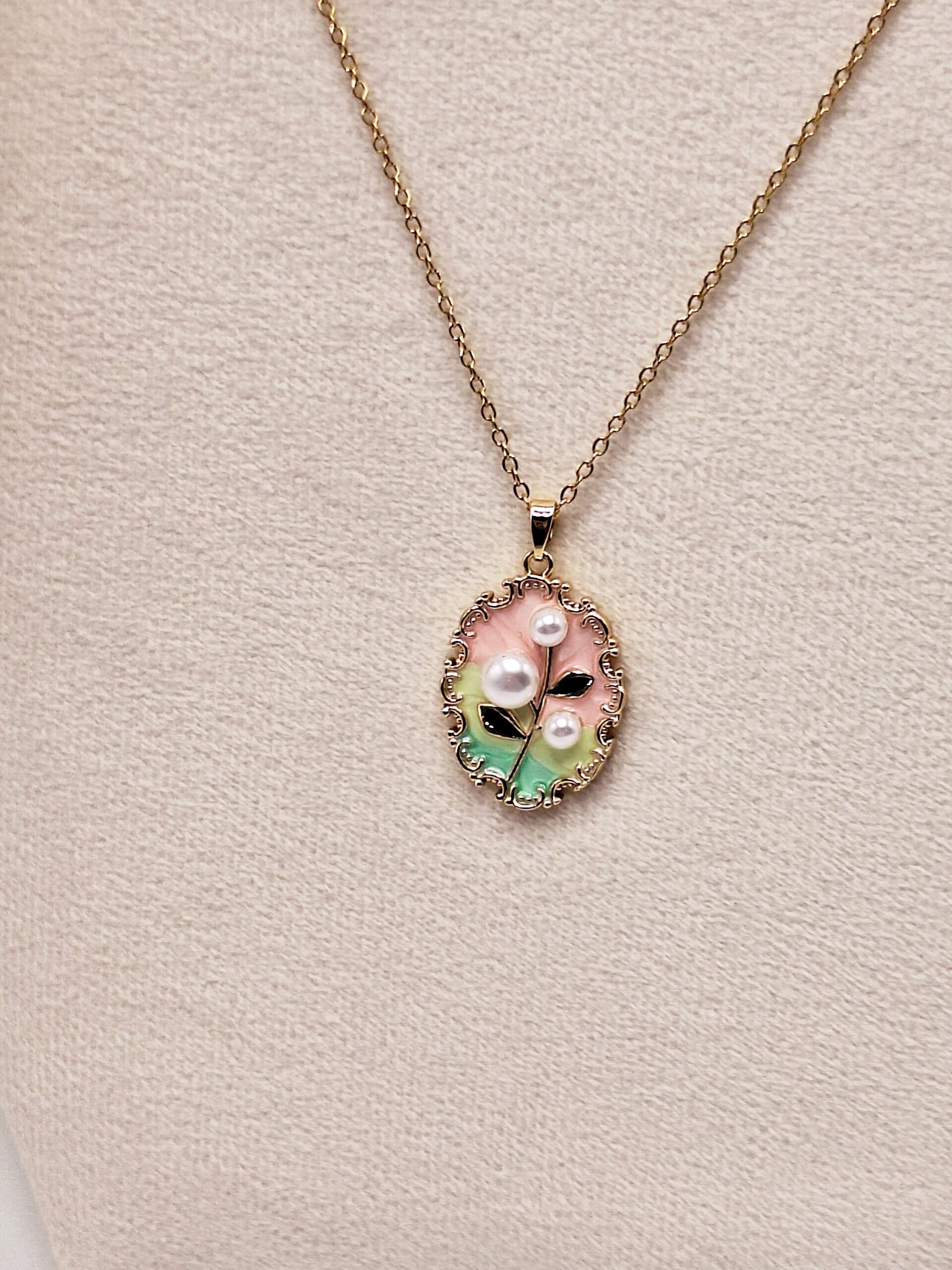 این گردنبند الهام گرفته شده از لطافت گلها و زیبایی مرواریدهای درخشان است و مناسب خانمهایی که عاشق اکسسوریهای شیک، دخترونه و فانتزی هستند 💖🌸✨😍