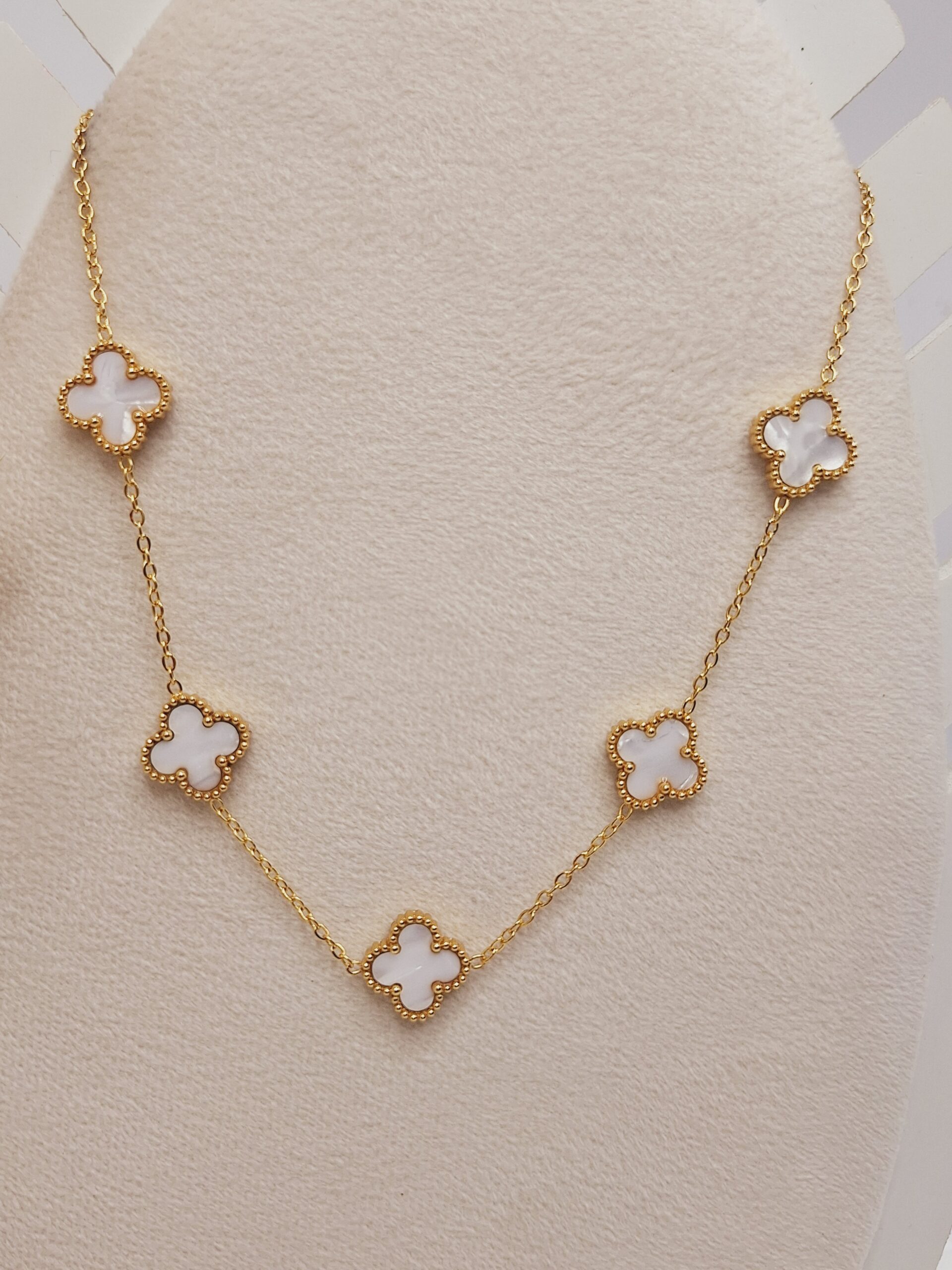 اگه دنبال یه گردنبند شیک، مدرن و پرطرفدار هستی، گردنبند ون کلیف سفید طلایی دقیقاً همون انتخابیه که استایل تو رو جذاب و خاص میکنه ✨🤍💛💎