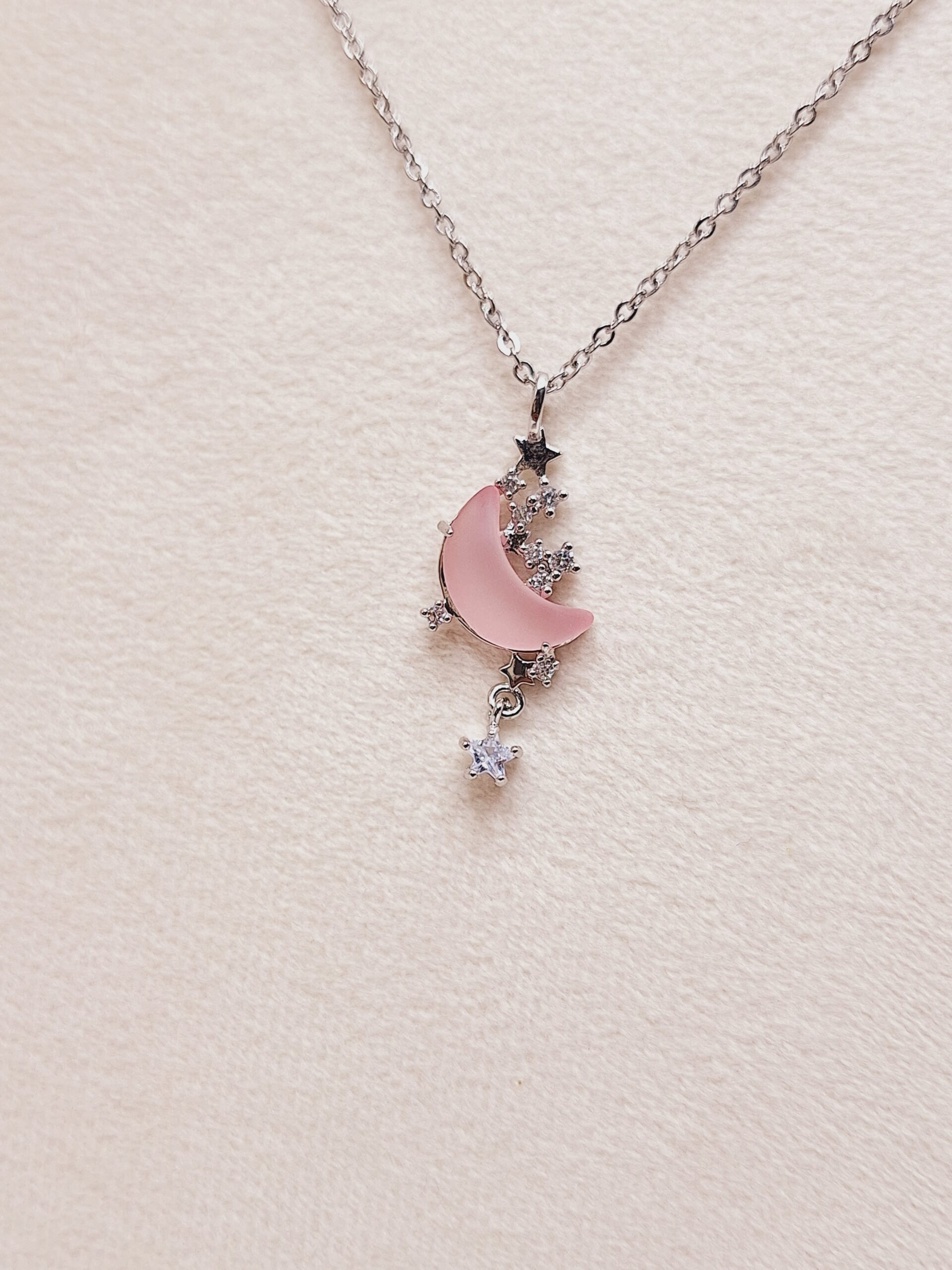 گردنبند پینترستی ماه آویز پروانه ای صورتی