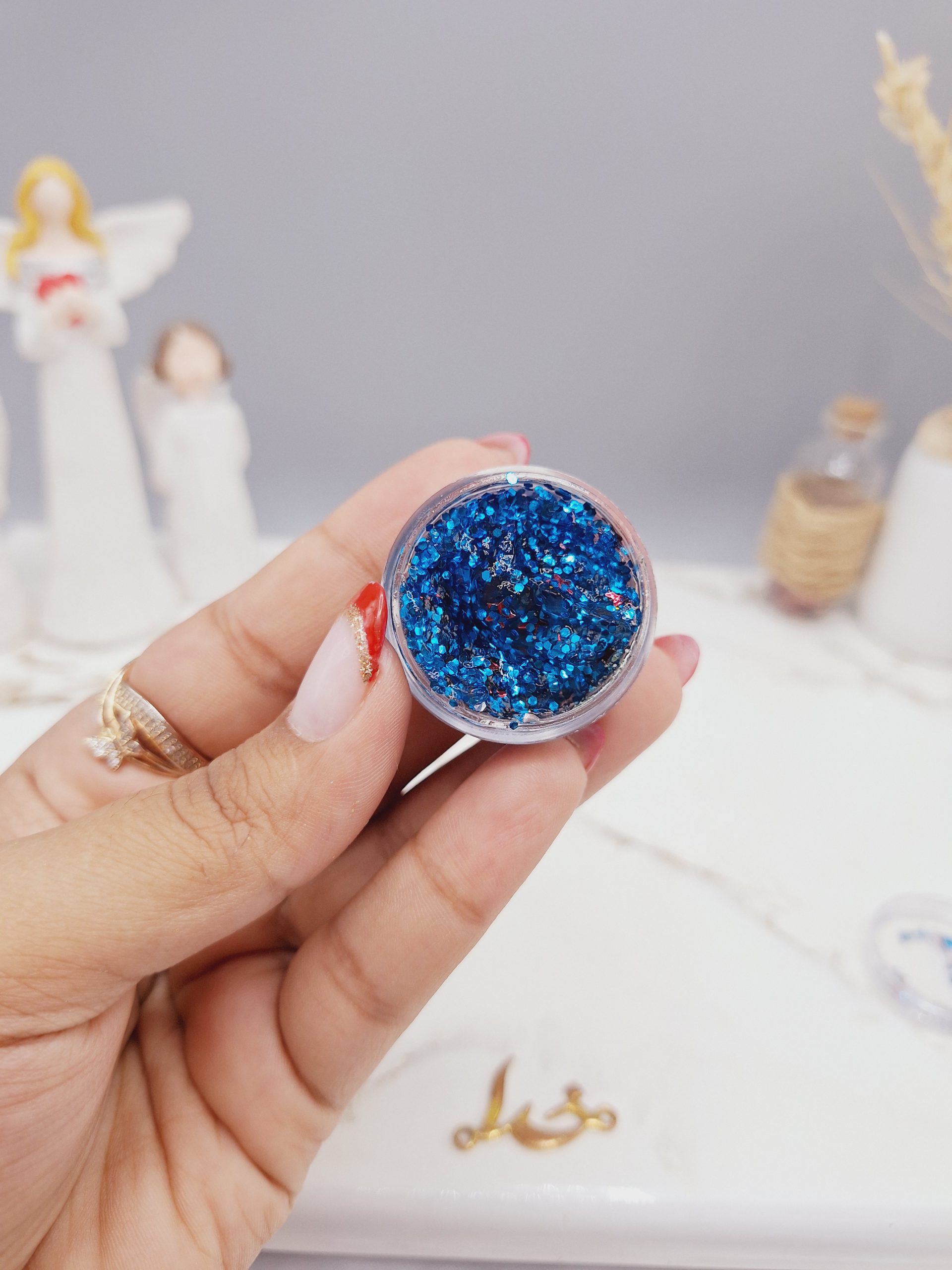 گلیتر مایع رنگ آبی، دارای ذرات شاین و اکلیلی است که درخشش بالایی دارد و جلوه زیبایی به آرایش های فانتزی و شاد می بخشد. این محصول بدون نیاز به چسب، به راحتی روی پوست صورت در نواحی گونه، زیر ابرو، بالای چشم و همچنین، پوست بدن استفاده می شود.