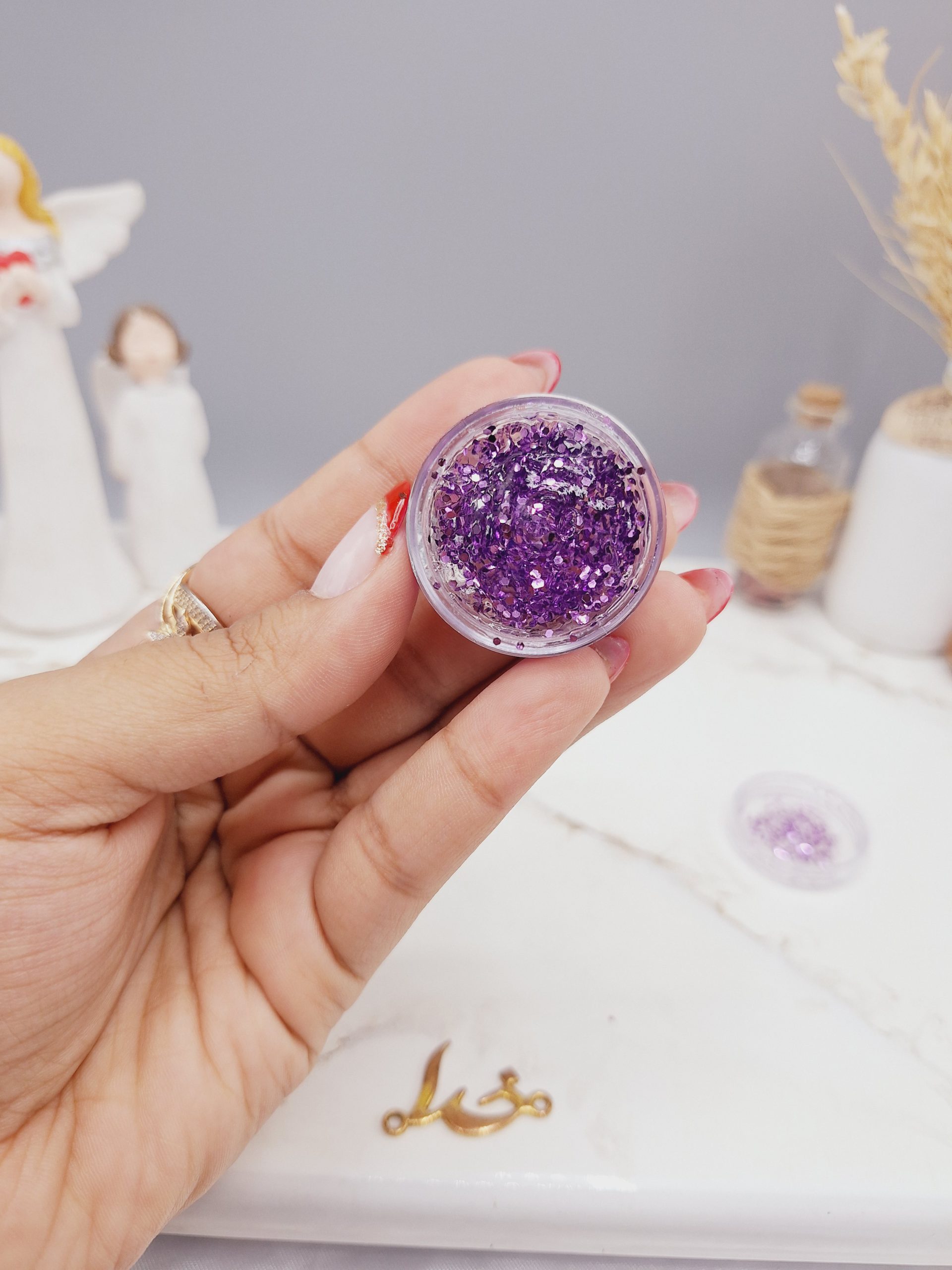 گلیتر مایع رنگ بنفش، دارای ذرات شاین و اکلیلی است که درخشش بالایی دارد و جلوه زیبایی به آرایش های فانتزی و شاد می بخشد. این محصول بدون نیاز به چسب، به راحتی روی پوست صورت در نواحی گونه، زیر ابرو، بالای چشم و همچنین، پوست بدن استفاده می شود.