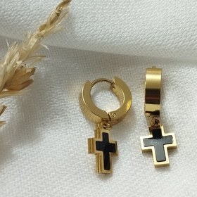 ناموجود گوشواره تمام استیل طلایی طرح صلیب