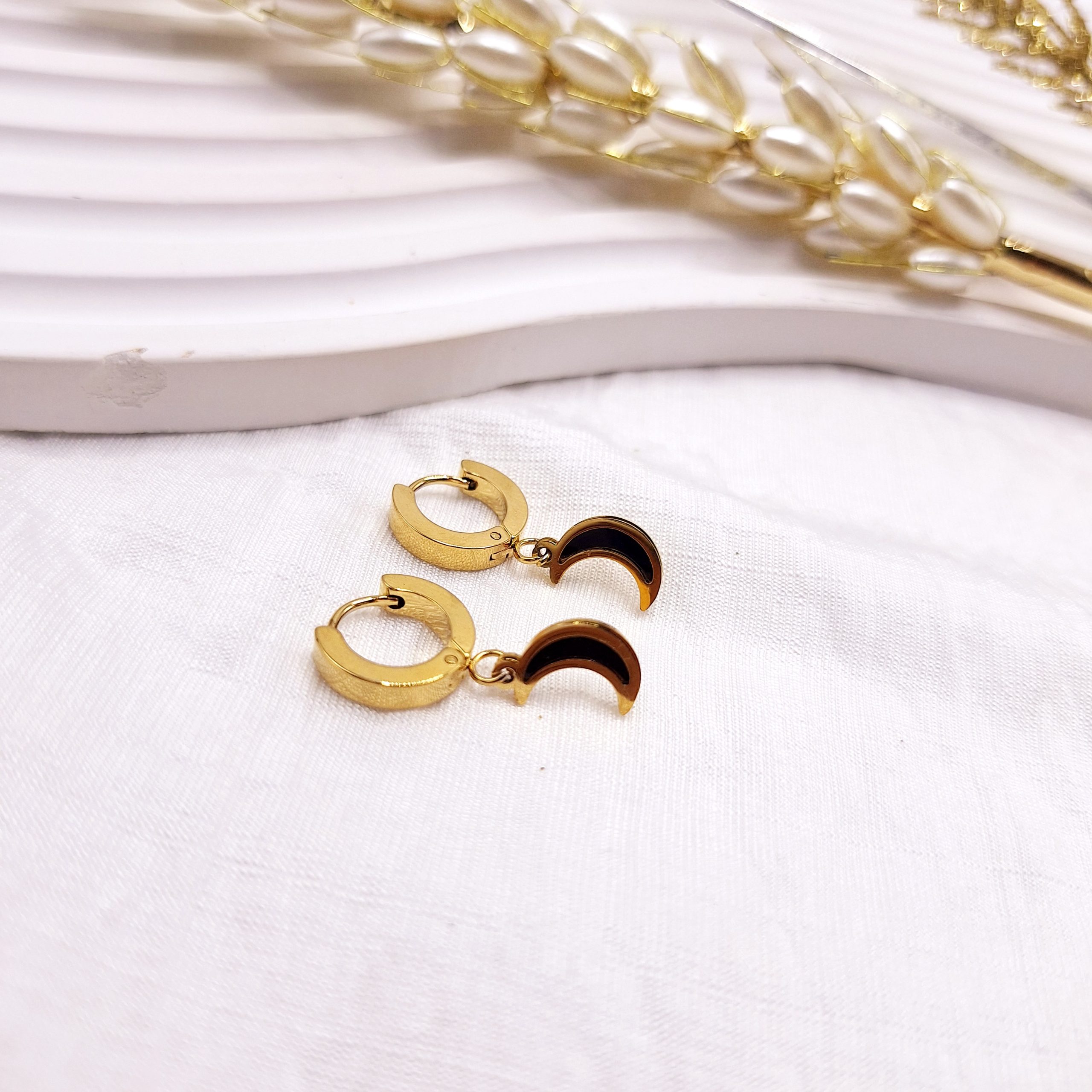 🆔 مدل: گوشواره طلایی طرح ماه استیل