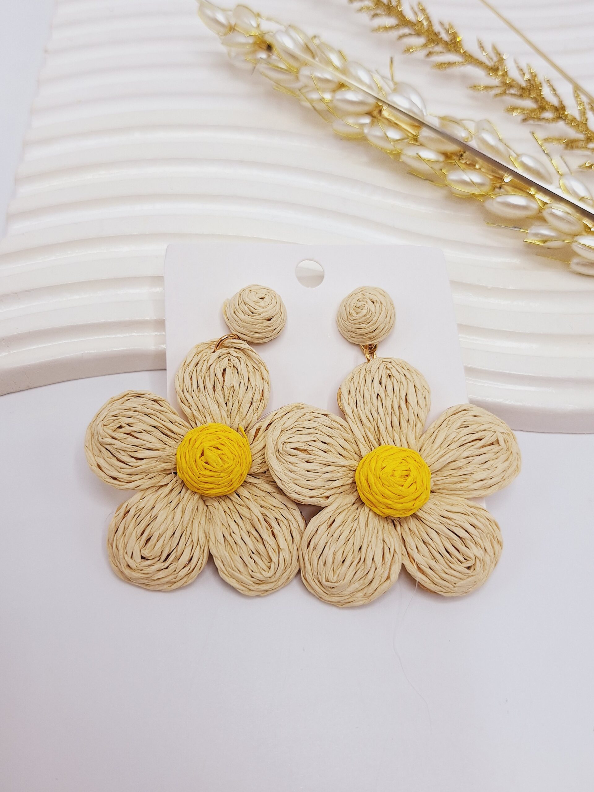 این گوشواره حصیری الهام گرفته شده از لطافت گلها و حس طبیعت است و مناسب خانمهایی که عاشق اکسسوریهای دخترونه، شیک و سبک تابستانی هستند 🌸💛✨😍