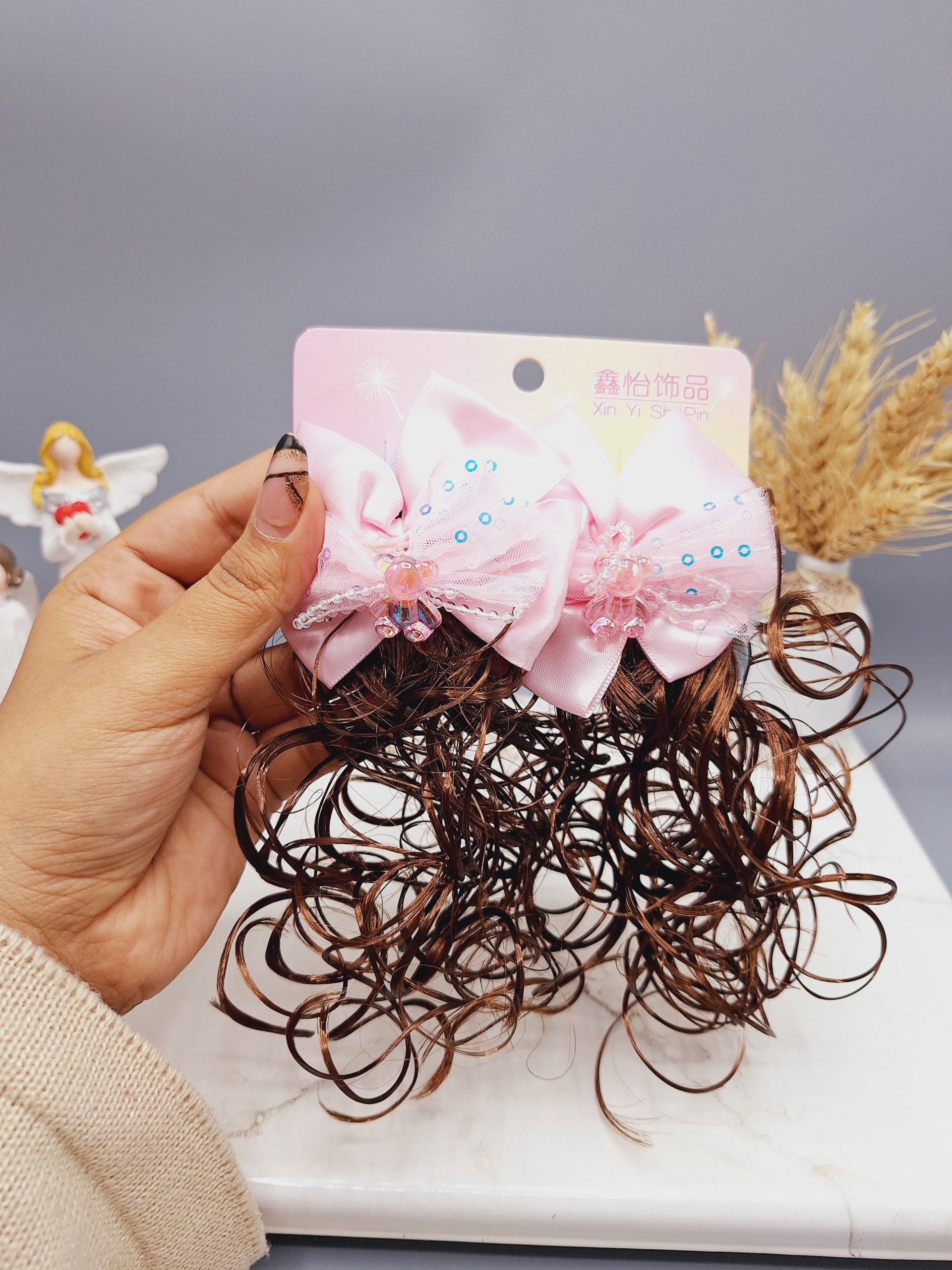 ناموجود گیره مو دخترونه پاپیون طرح گل مرواريدی با موی مصنوعی (کارت دوتایی)