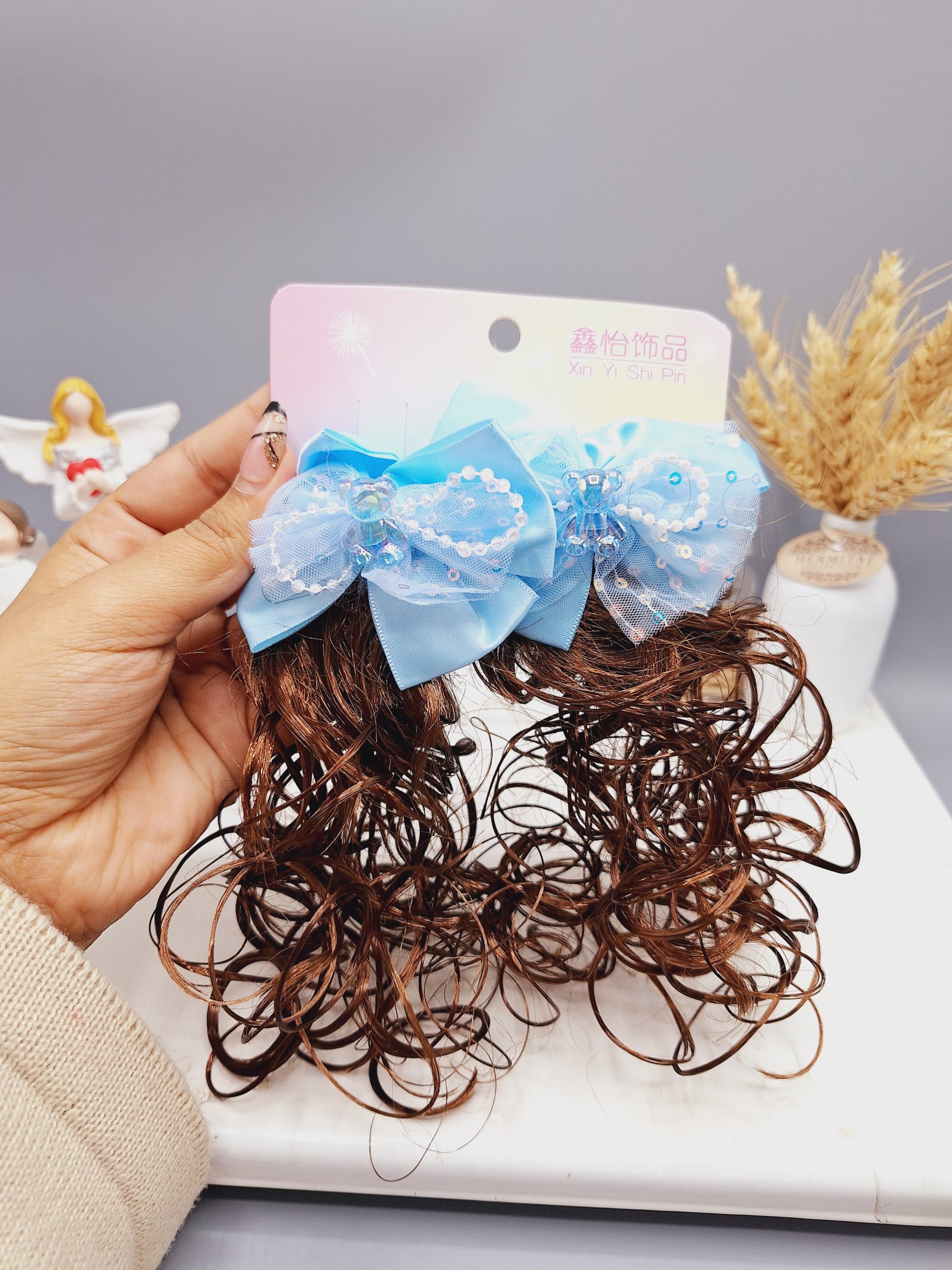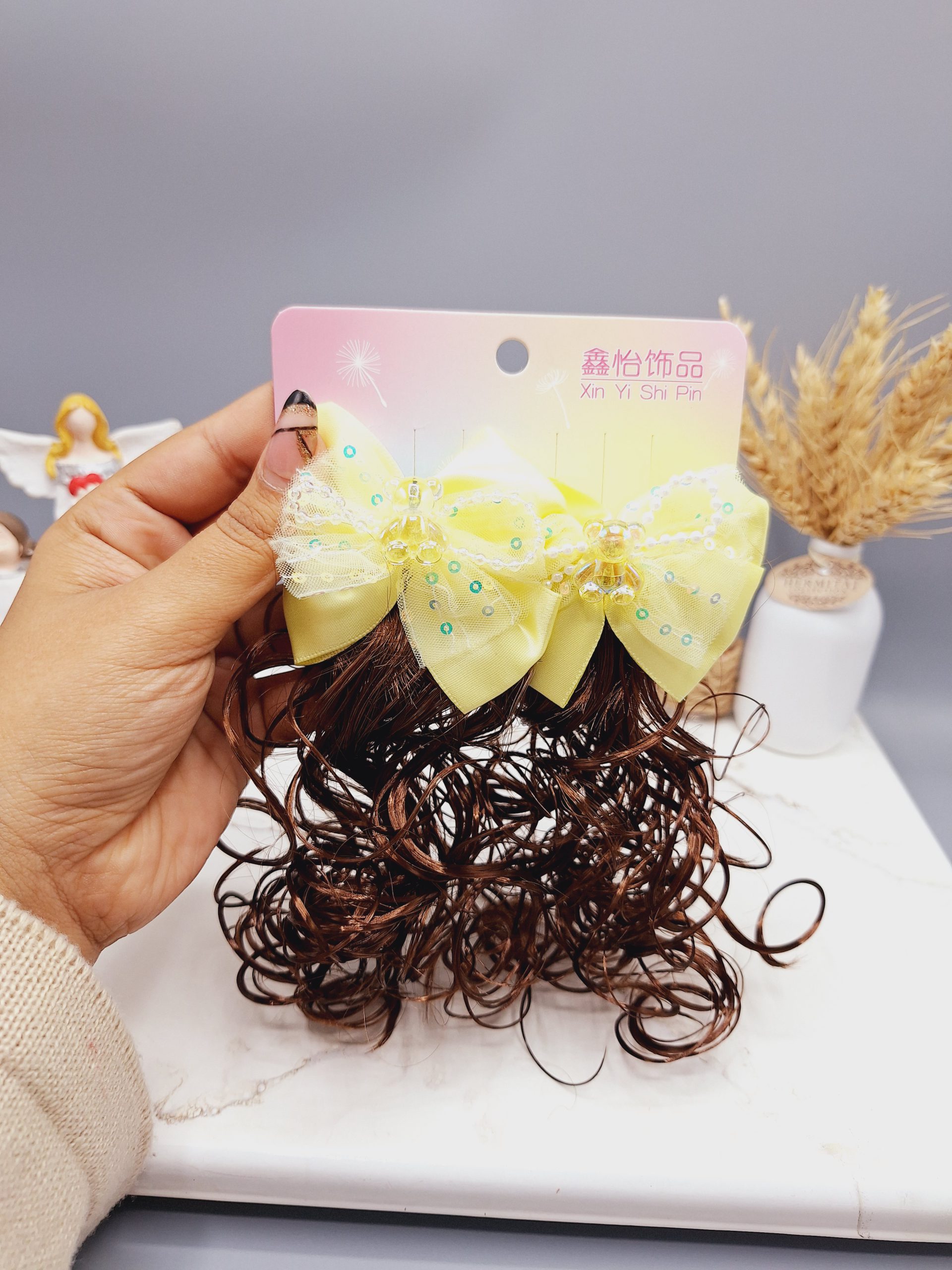 گیره مو دخترونه پاپیون طرح گل مرواريدی با موی مصنوعی (کارت دوتایی)