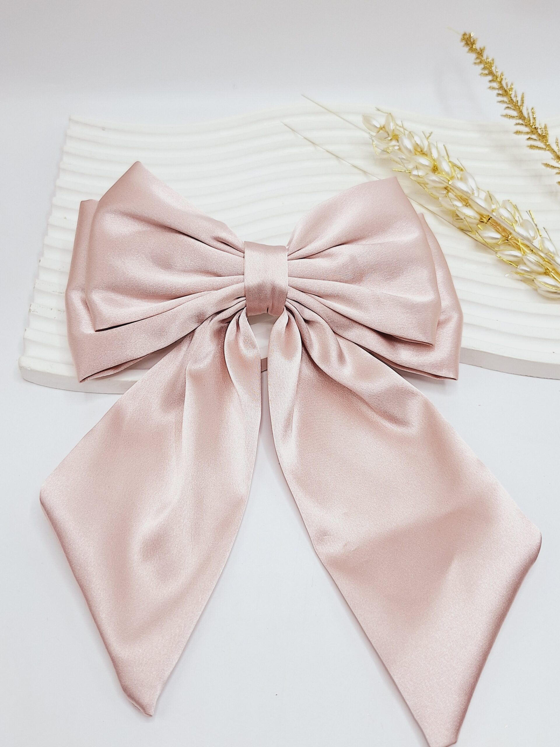 طرح پاپیون با جنس ساتن نرم و براق، جلوهای ظریف و دلنشین به موهای شما میبخشد و رنگ صورتی آن حس دخترانه و لطافت را به استایل شما اضافه میکند 💖🌸