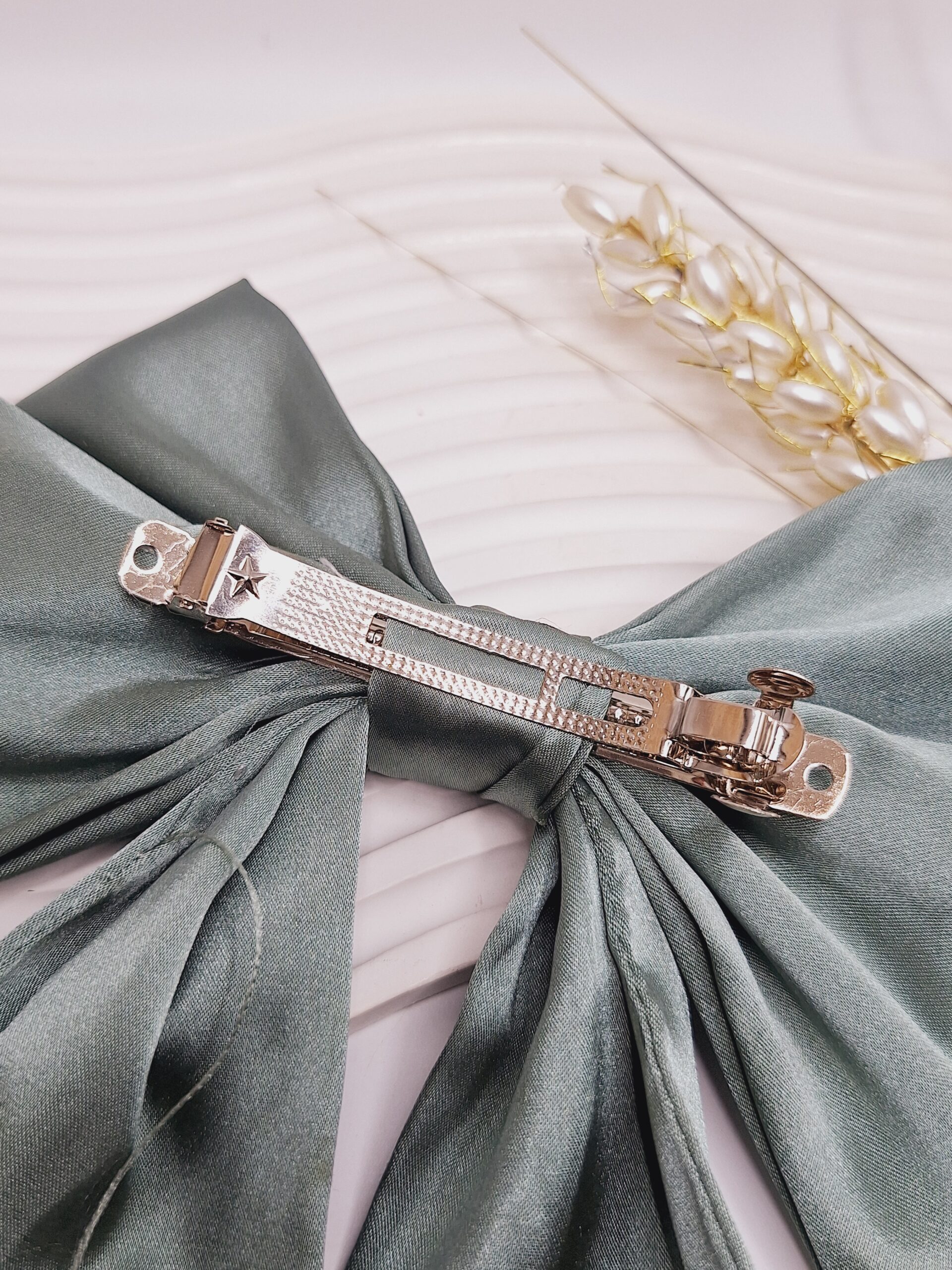 گیره یا گلسر مو فرانسوی طرح پاپیون ساتن سدری، انتخابی شیک و لطیف برای بانوانی است که به جزئیات و جلوههای ظریف و متفاوت اهمیت میدهند 🎀✨